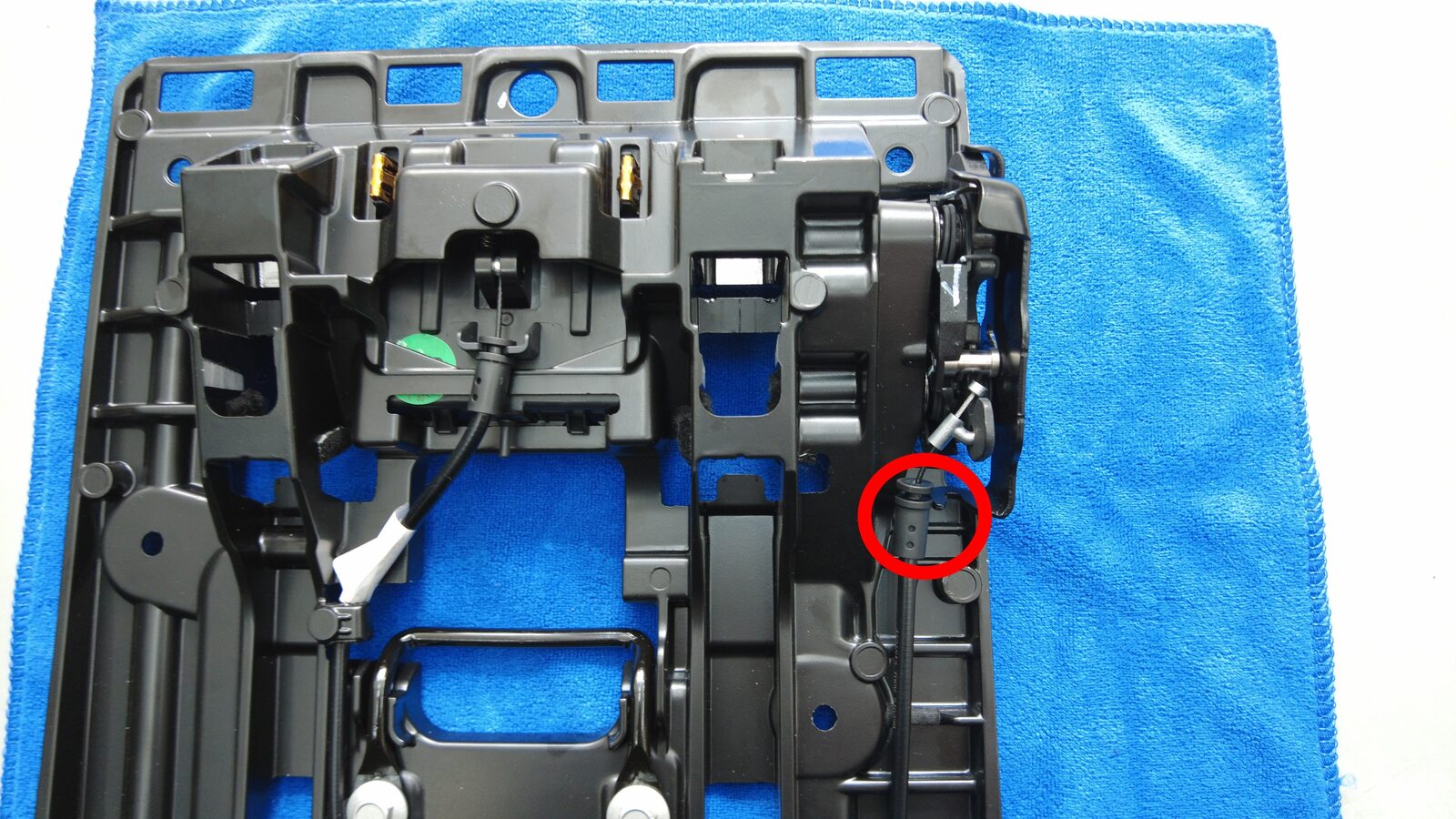 将 20 百分比闩锁传动装置线缆紧固到 20 百分比座椅靠背框架上。