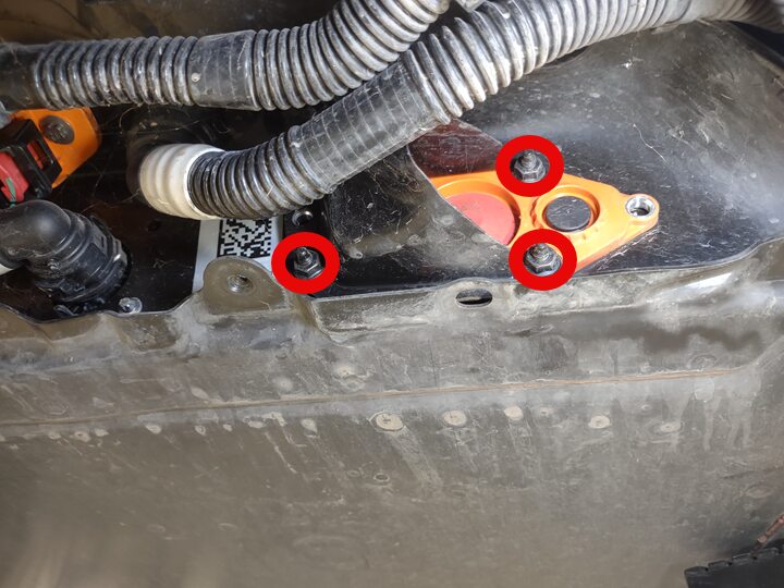 Remove rear battery enclosure skid plate from HV battery pack