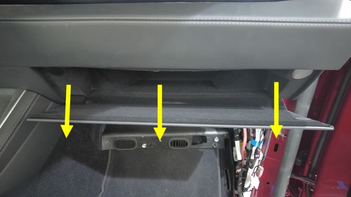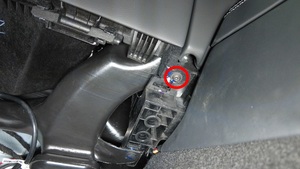 松开将副驾位脚部空间风管固定到车辆的卡子。