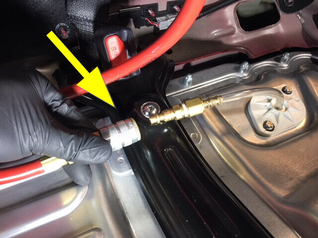 将泄漏测试适配器安装到高压电池仓探针盖上。