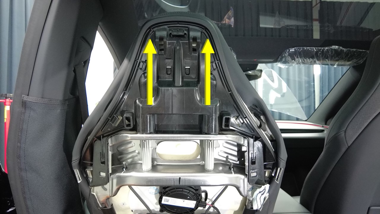 - 安装驾驶位座椅头枕框架机构。请参阅 机械装置框架 - 头枕 - 驾驶位座椅(Model Y L) ((拆卸和更换))。