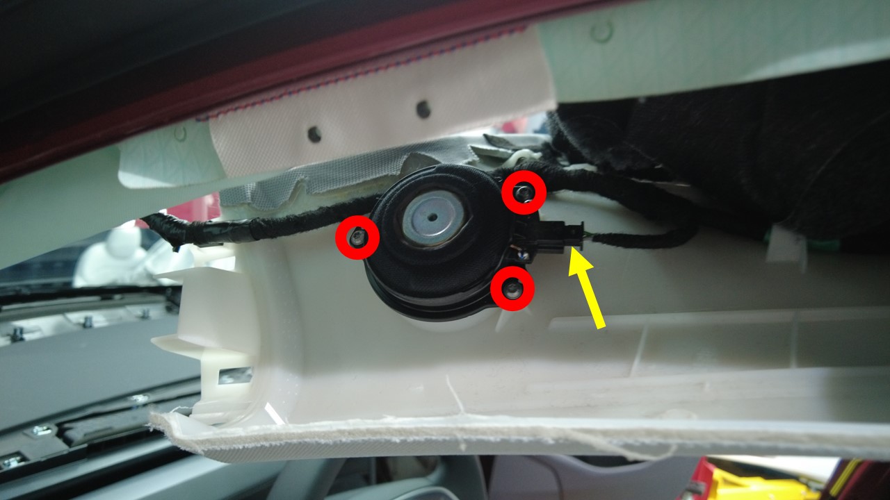 连接电气连接器,然后安装将60毫米全频扬声器固定到顶棚上的螺丝(x3)。