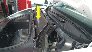 - 拆下前备箱后部挡板。请参阅 前备箱挡板 - 后部(拆卸和更换)。