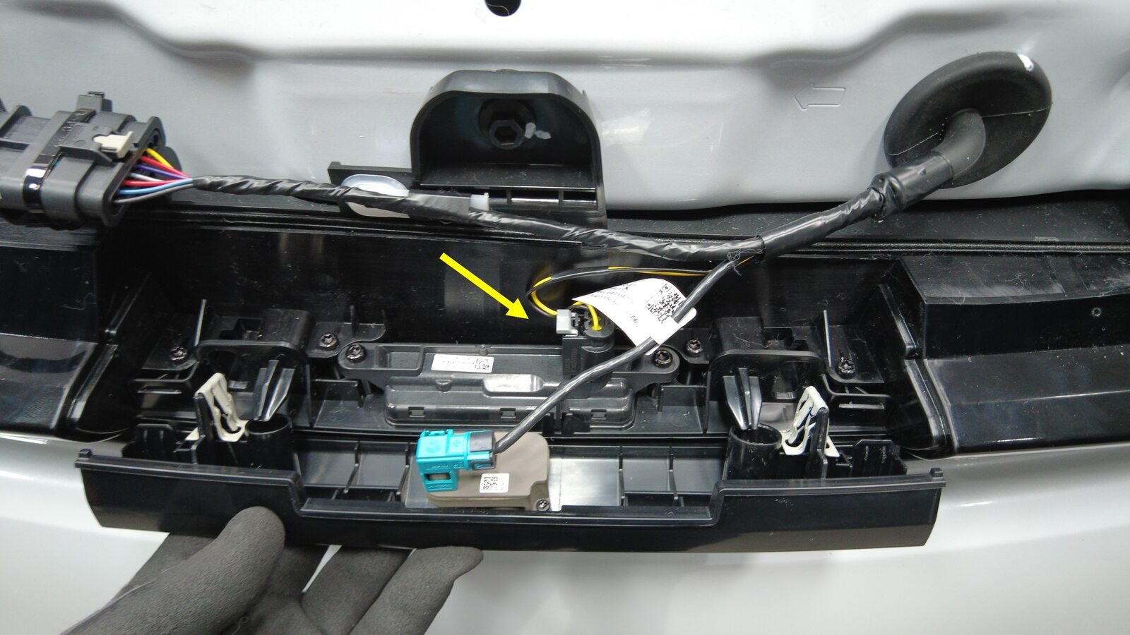 - 将后置摄像头盖板从掀背尾门上拆下,但注意请勿将摄像头从盖板上拆下。请参阅摄像头 - 后视 ((拆卸和安装))。