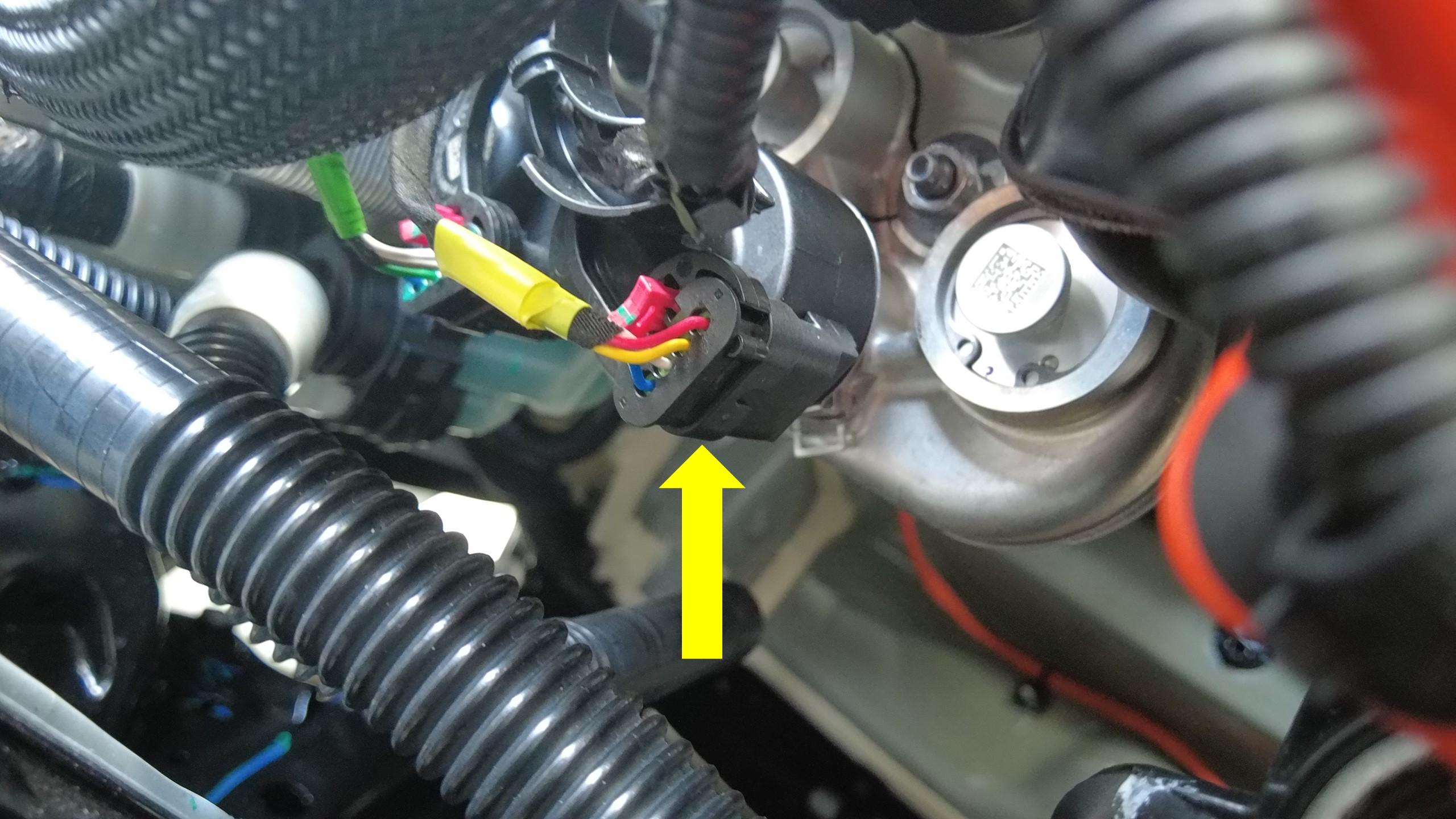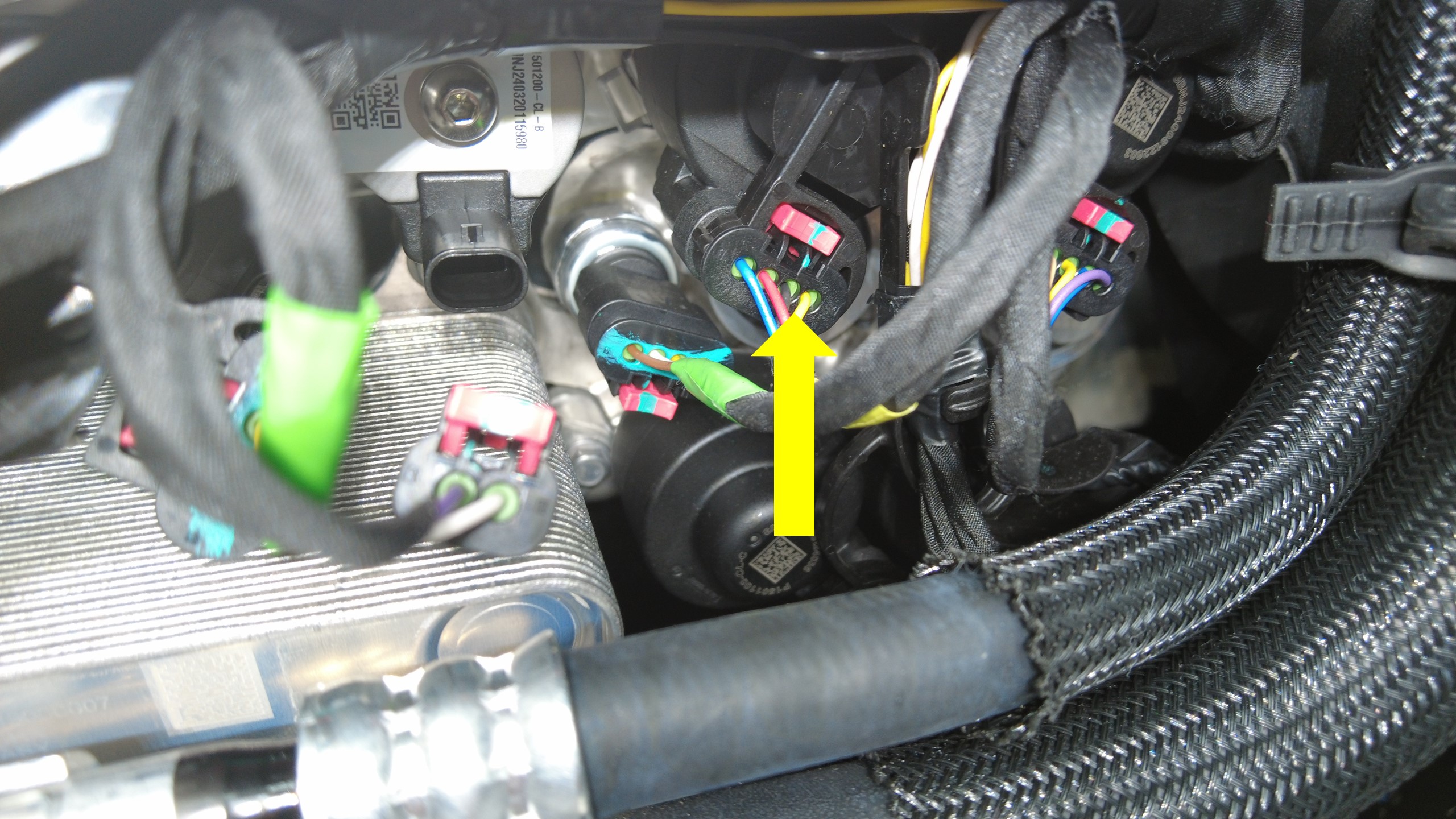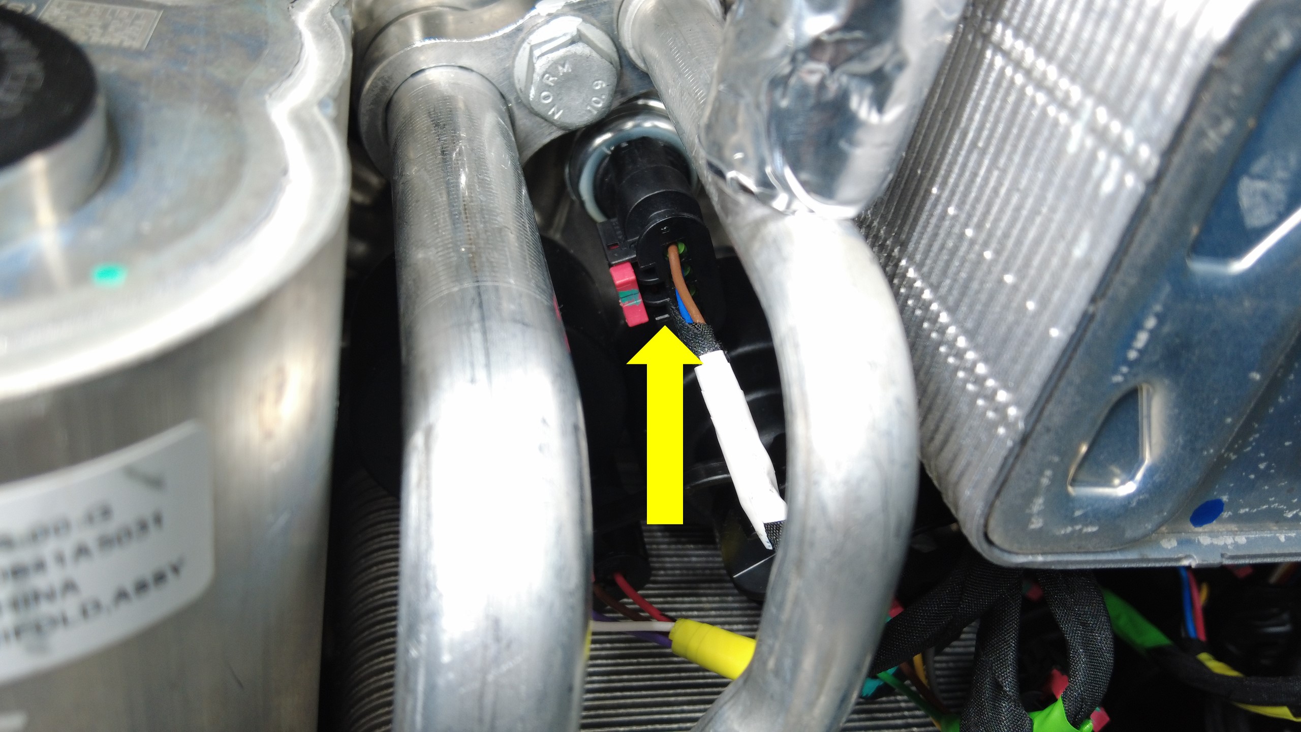 连接驾驶室右侧冷凝器膨胀阀电气连接器。