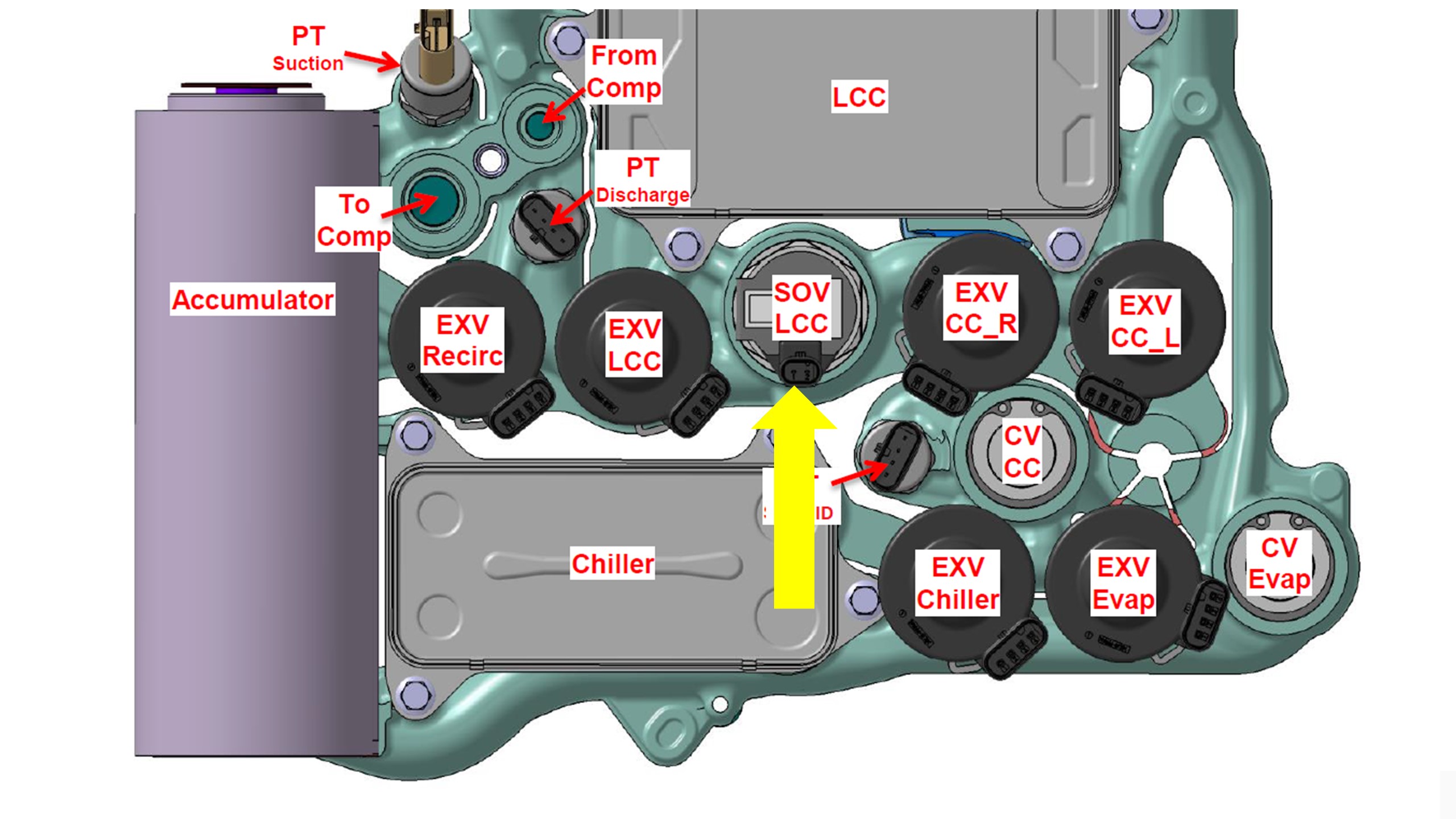 连接高压和温度过冷式膨胀阀电气连接器。