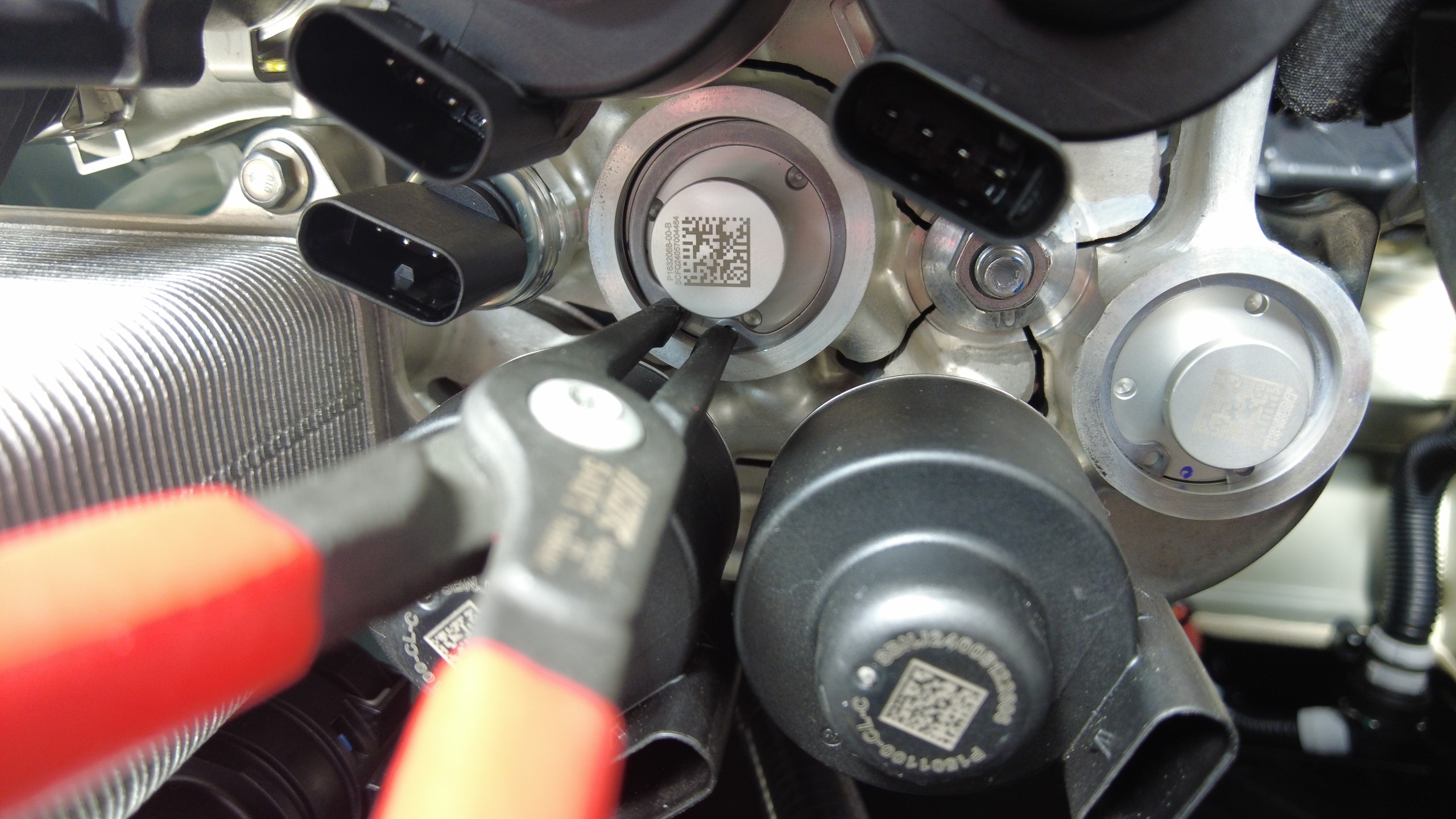 松开锁片,然后断开高压和温度过冷式膨胀阀上的电气连接器。