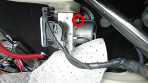 - 将吸收性材料从制动助力器总成和储液罐区域下方取走。