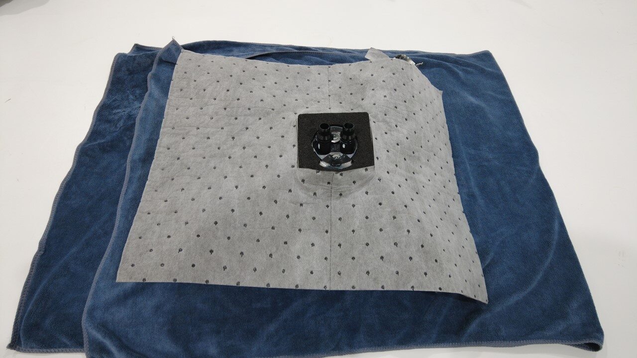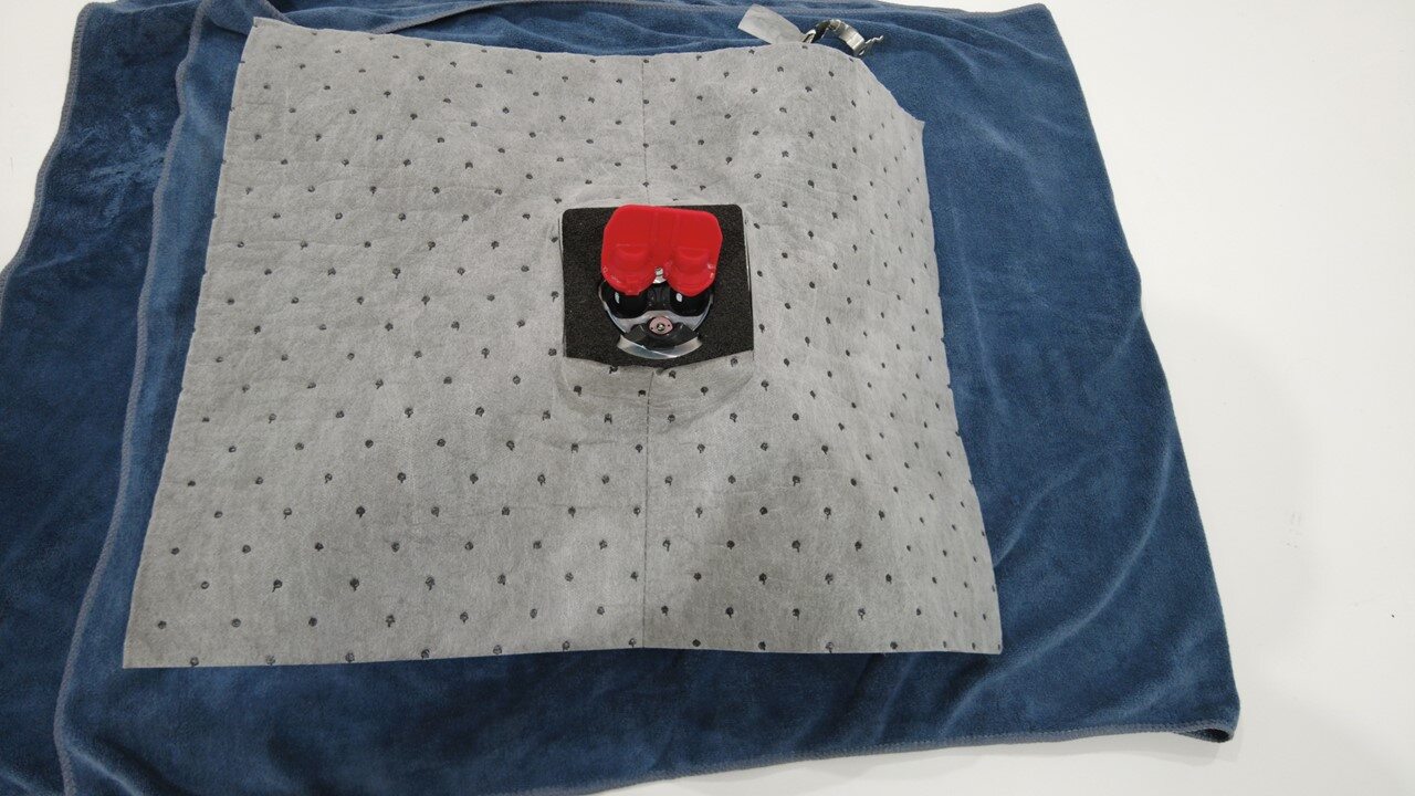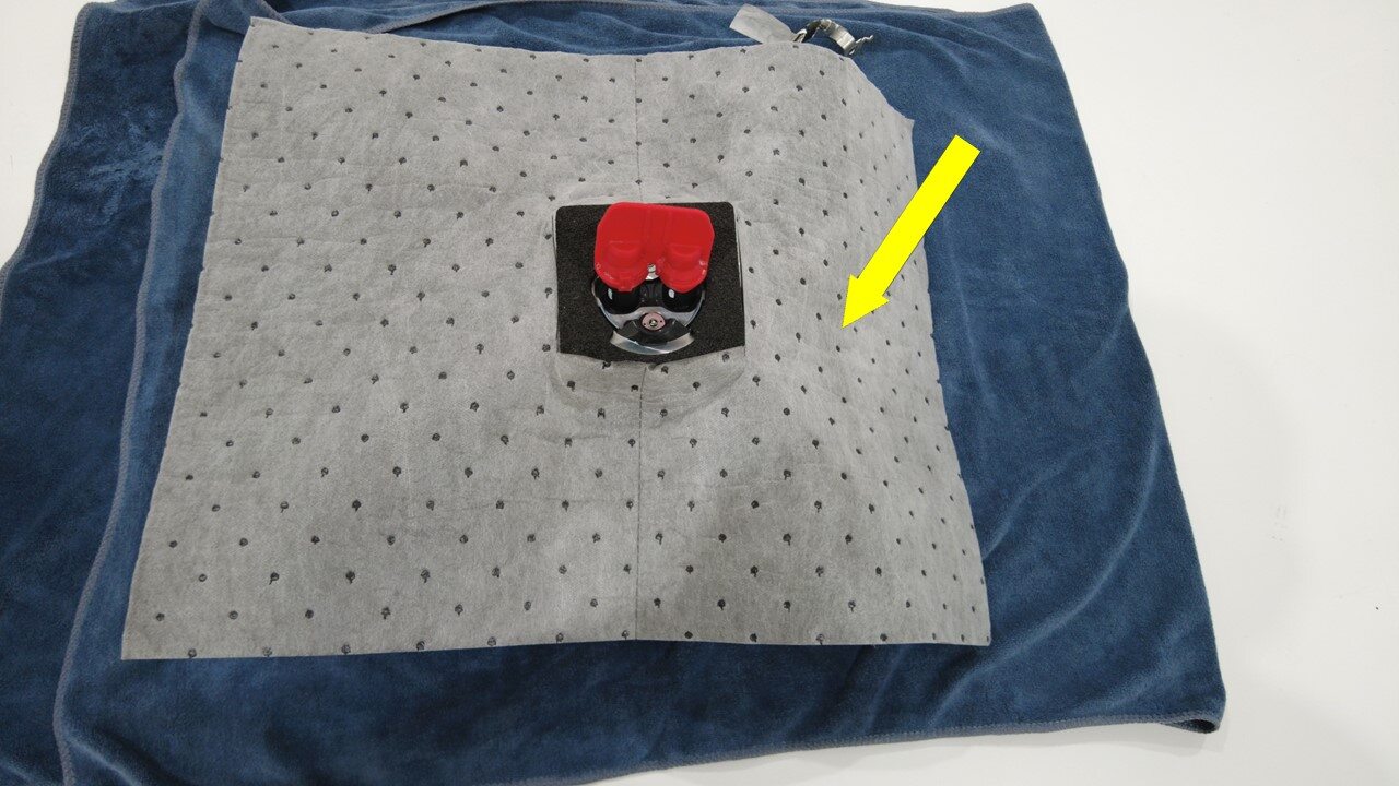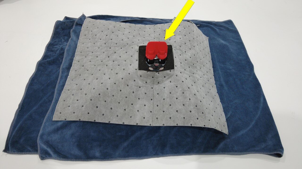 取出一块吸水垫并在中间切出一个方孔。