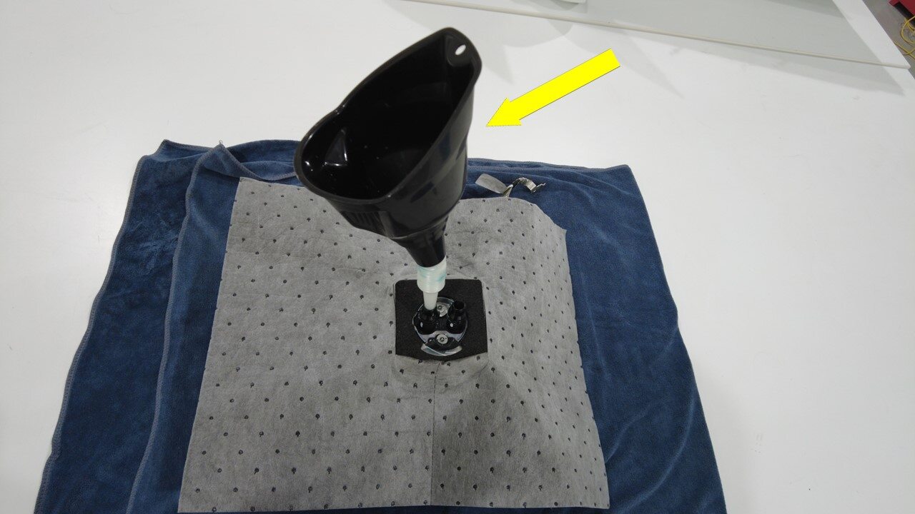 将折叠漏斗插入车载电脑一根软管中。