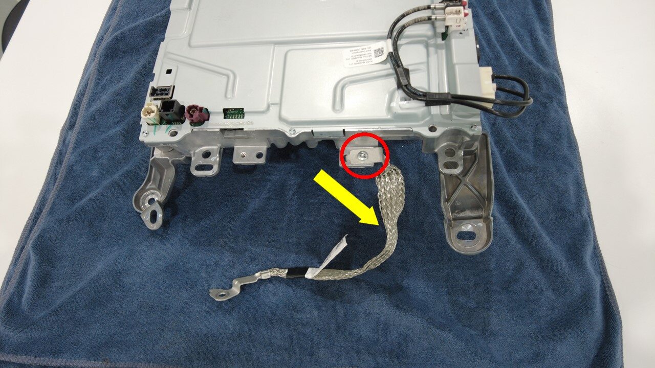 拆下并弃用将接地带固定到车载电脑的螺栓。