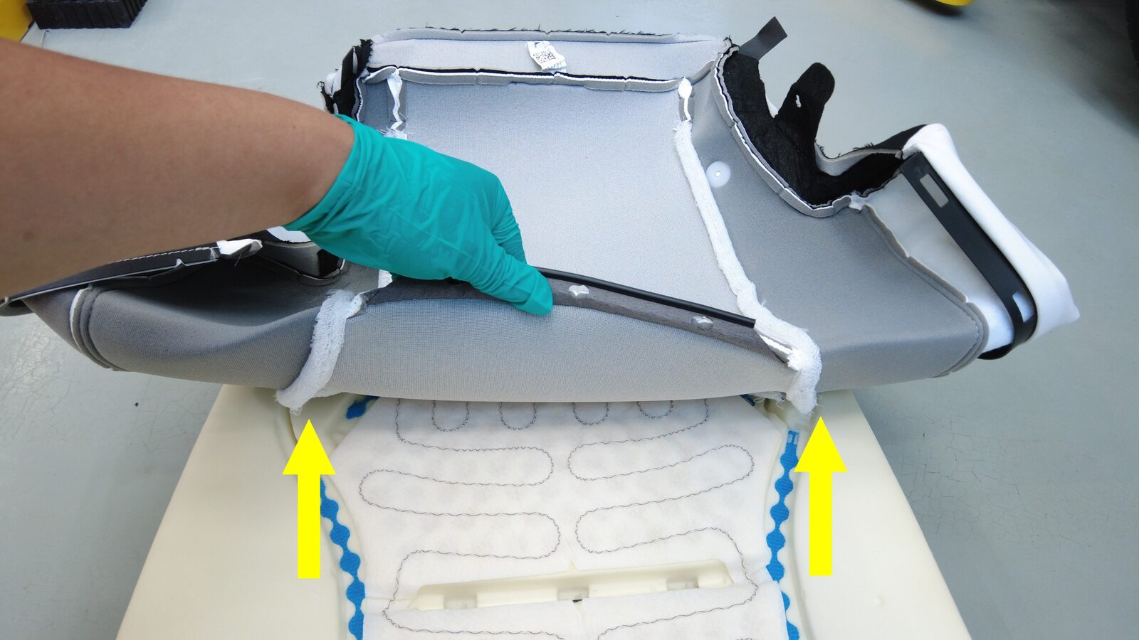 将第二排右侧外罩从泡沫垫上拆下。