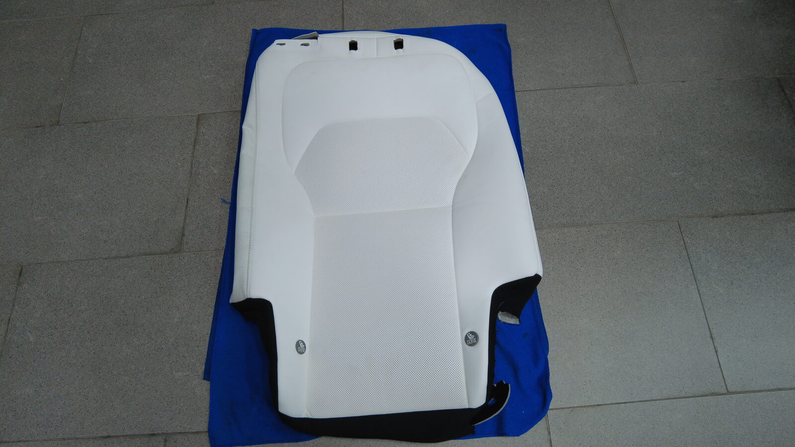 从右侧第二排头枕处开始,安装右侧第二排座椅靠背蒙皮罩。
