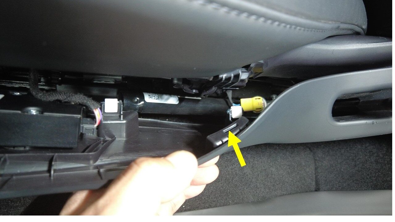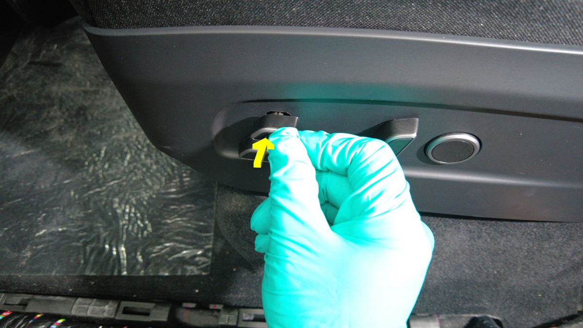 仅适用于高性能版车辆:拆下腿部伸展开关按钮。