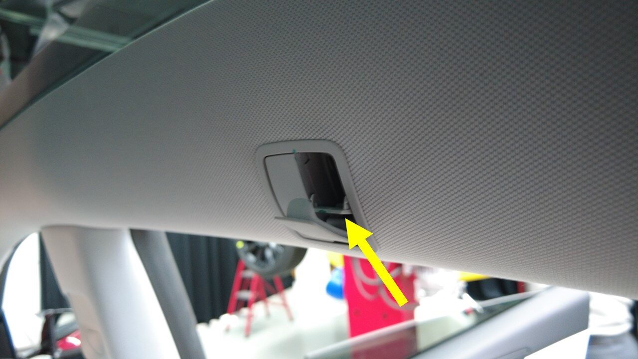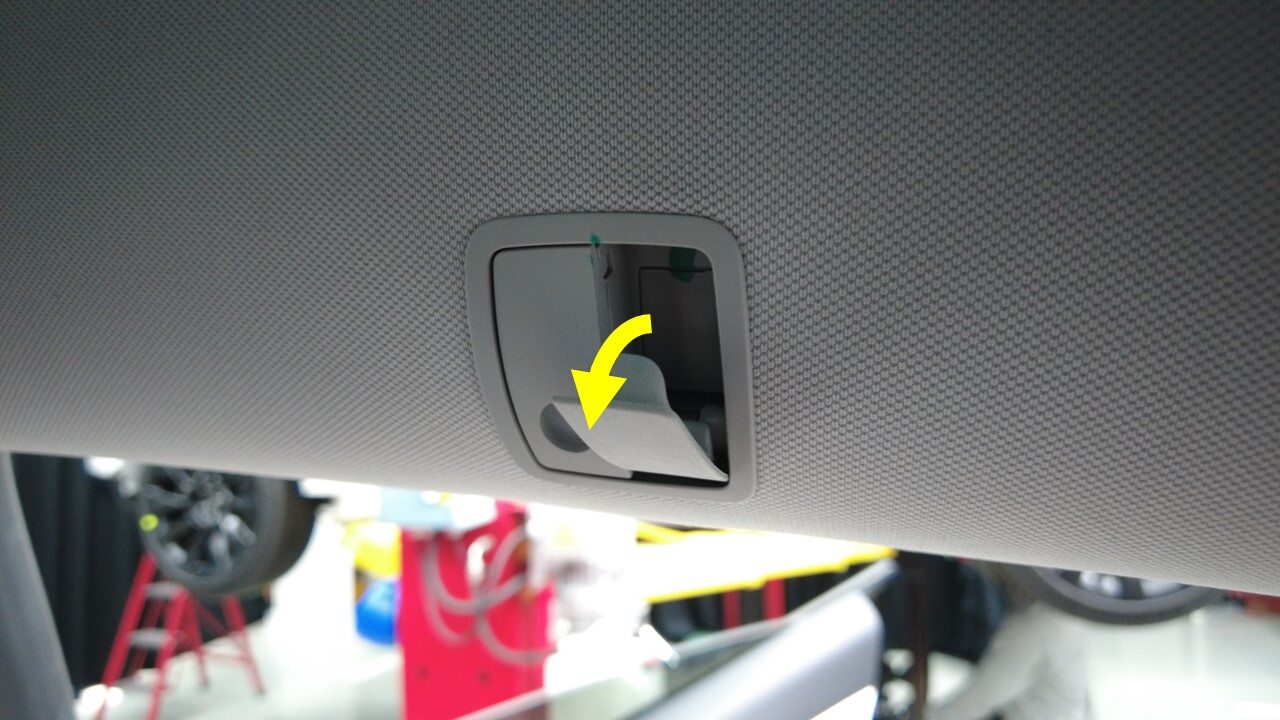 松开将右侧衣帽钩螺钉帽固定到顶篷的锁片。