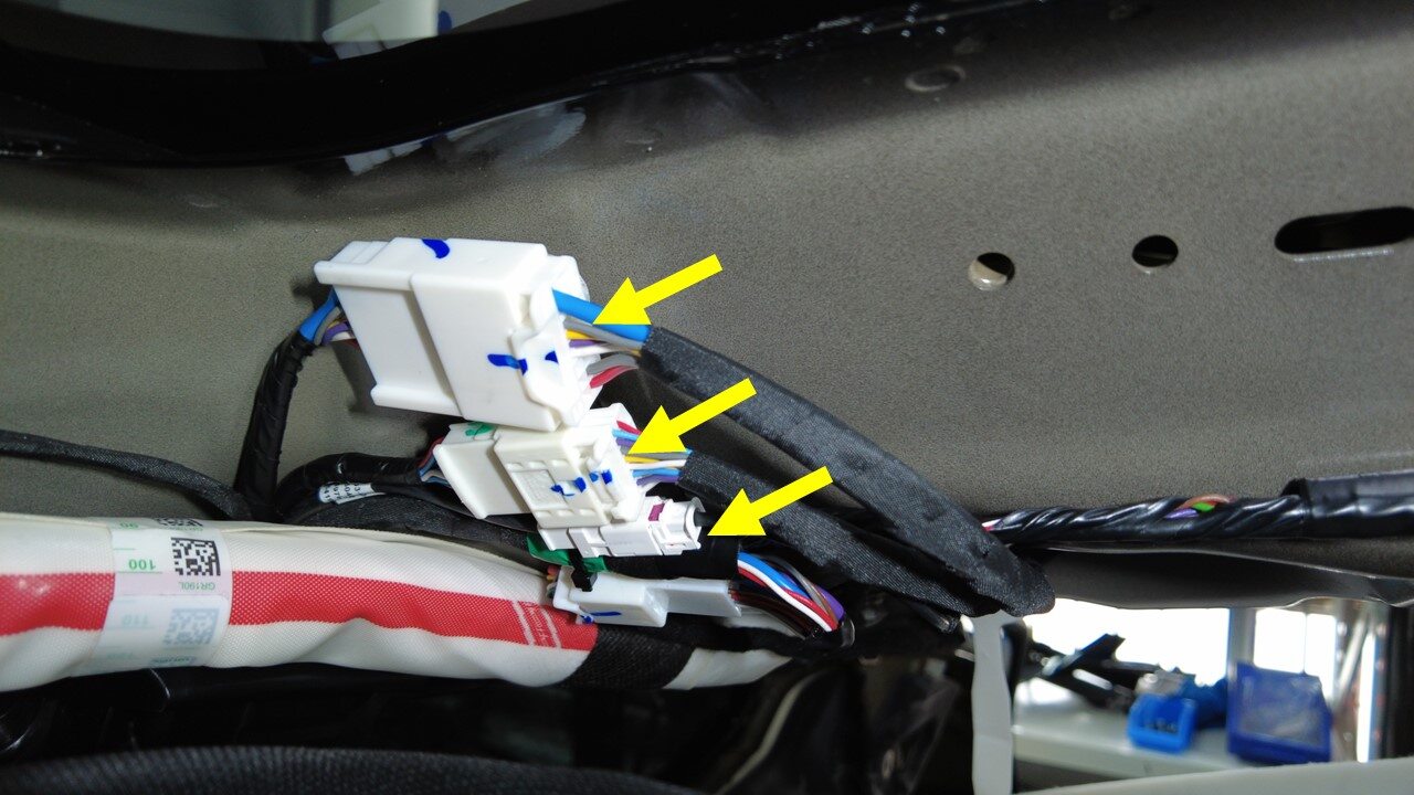 连接掀背车门线束连接器 (x3)。
