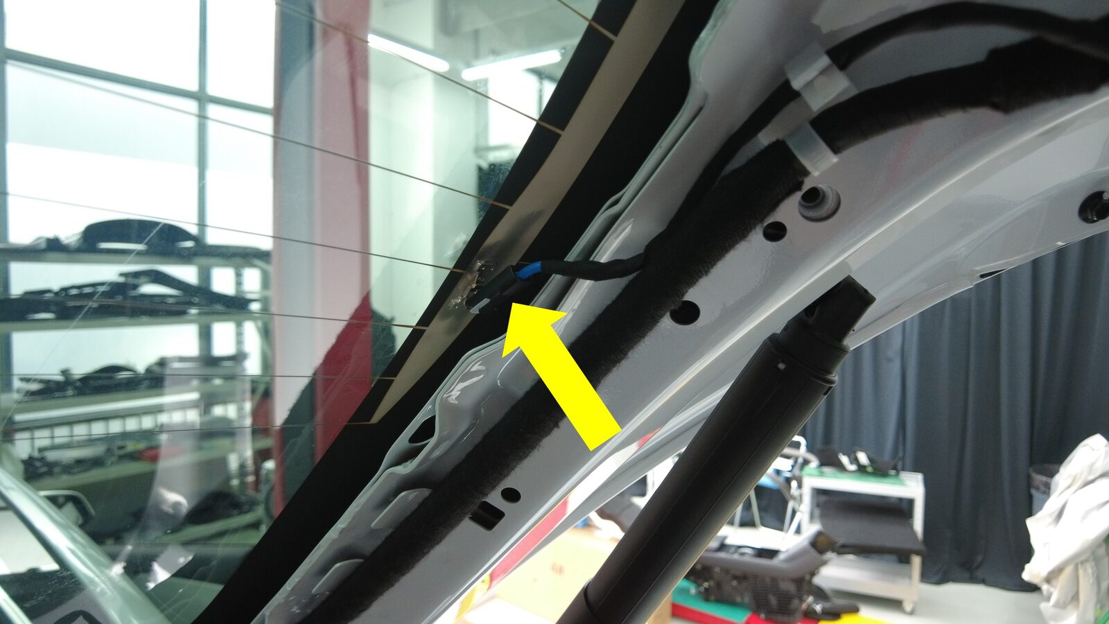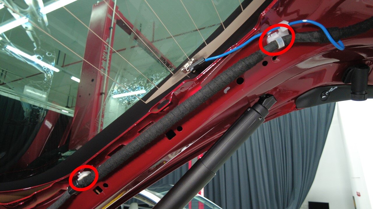 将掀背尾门索环从车身上松开,然后将线束从车辆上拆下。