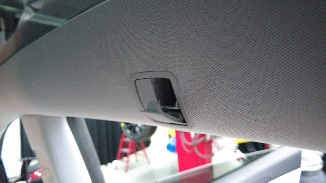 拆下将右侧衣帽钩固定到顶篷的螺栓。
