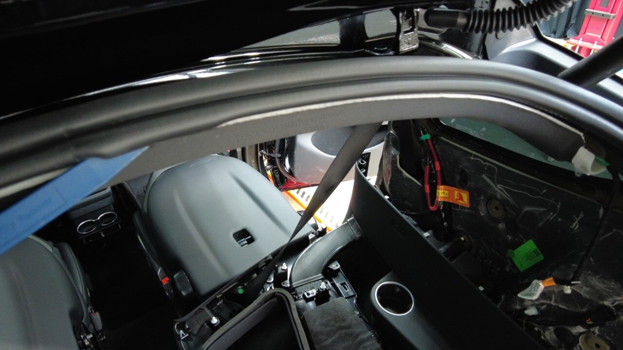 注确保密封条覆盖住了内饰板。