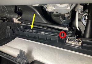 松开将驾驶位脚部空间盖板固定到车辆的卡子。
