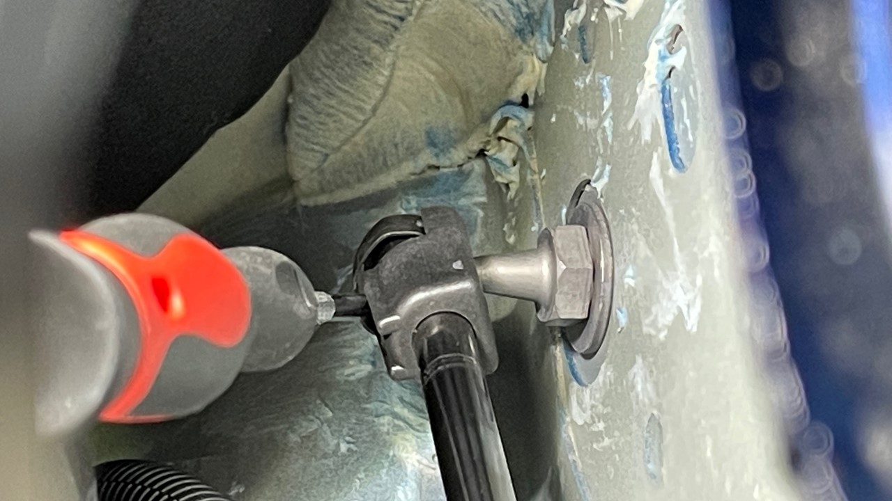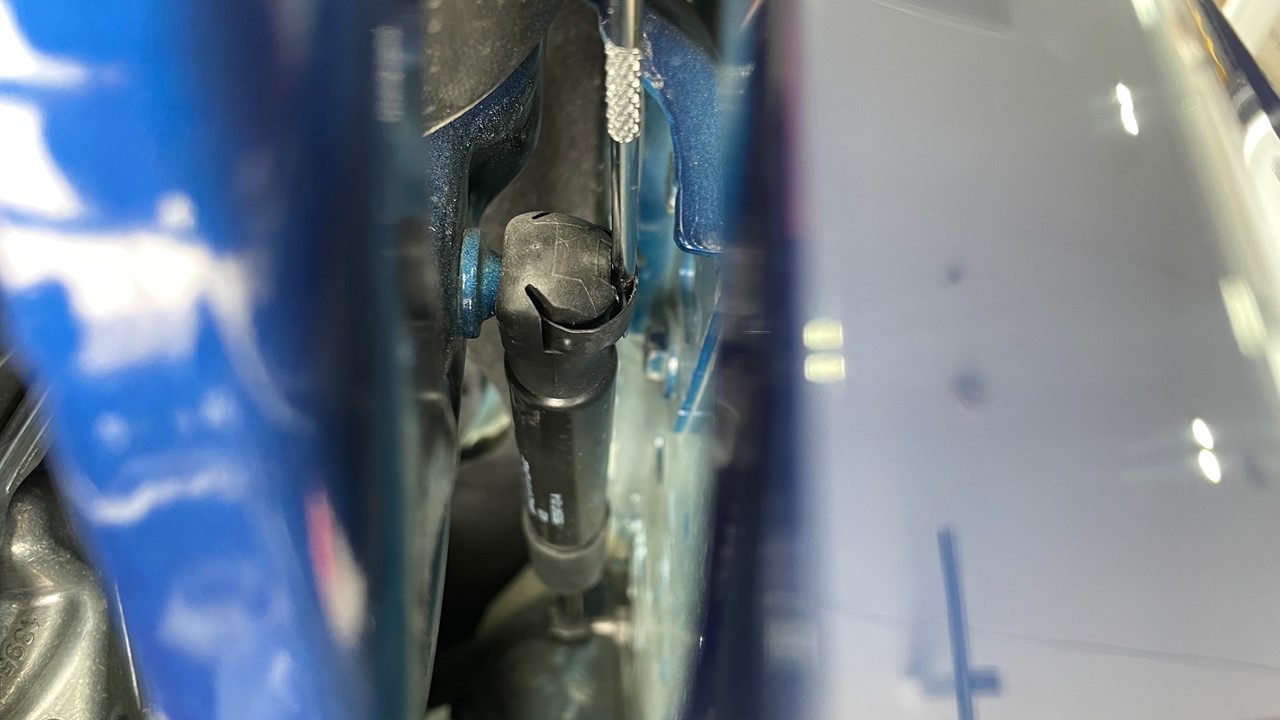 松开将左侧气动支柱固定到车身支座的卡子,然后拆下支柱。