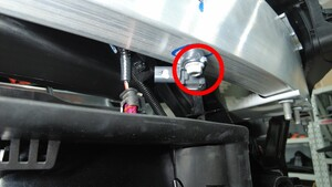 安装将左侧加速度计传感器固定到前保险杠梁的螺栓。