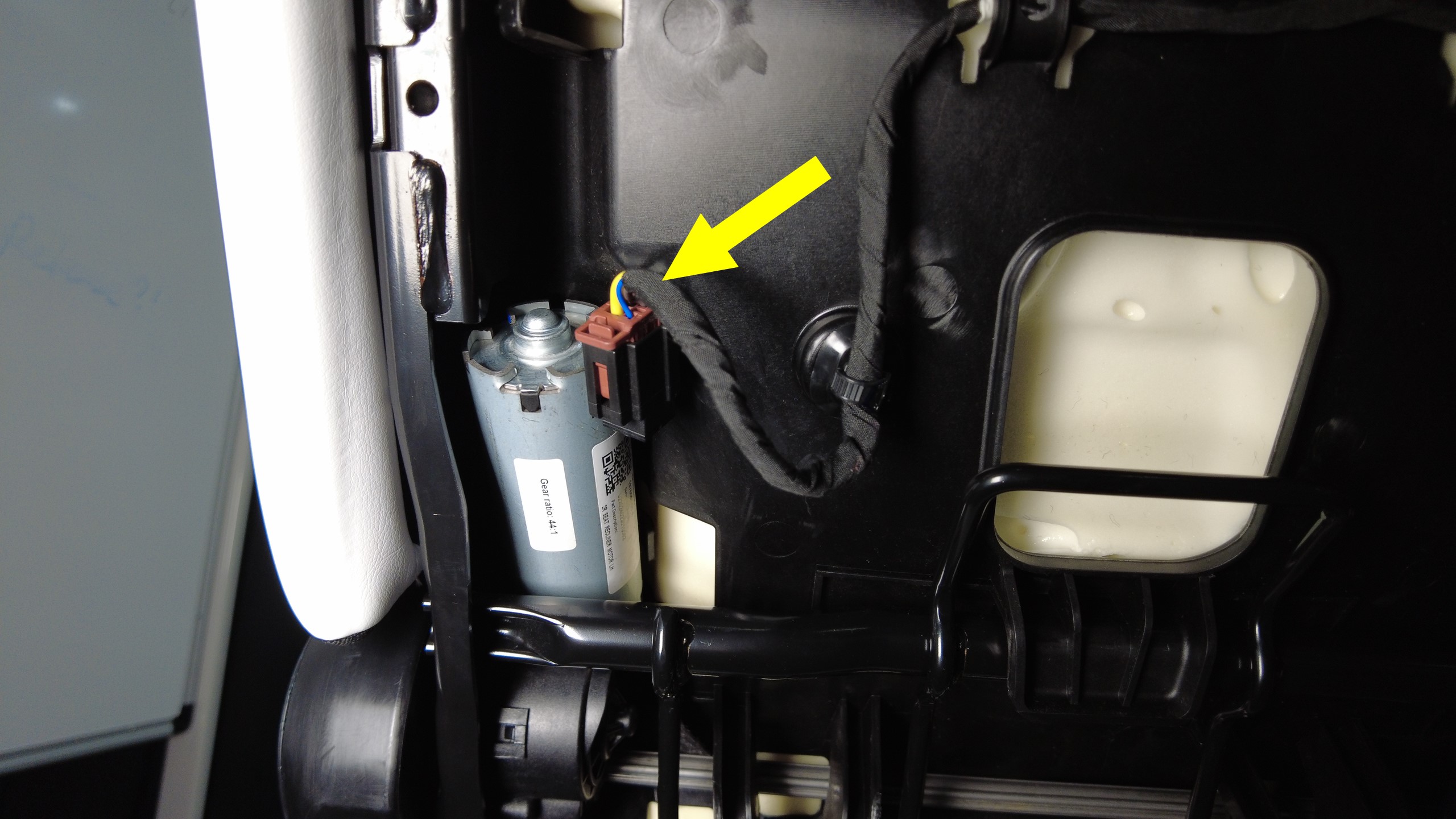 连接第二排左侧座椅靠背调整电机连接器。