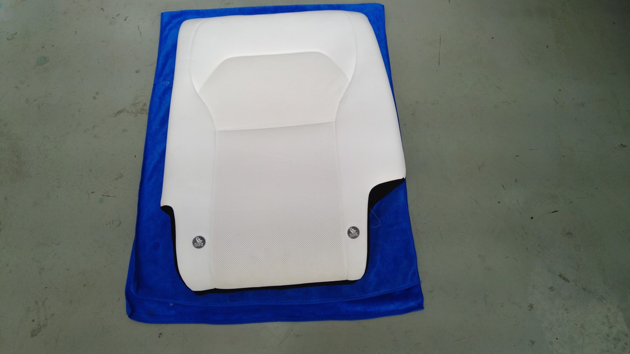 在协助下,将第二排左侧座椅总成放置到有垫层的表面。