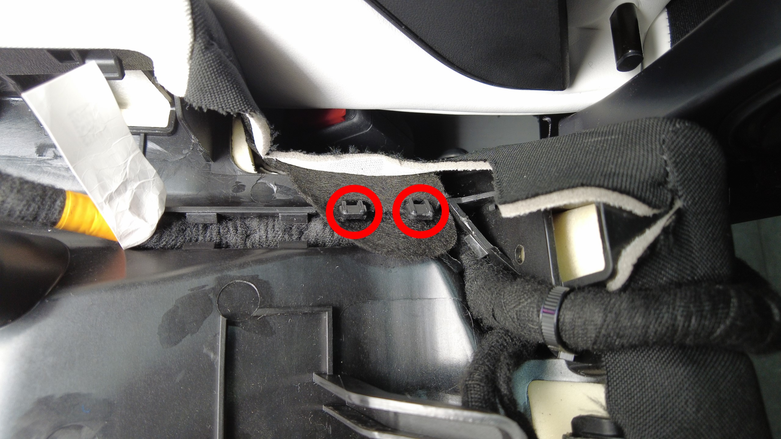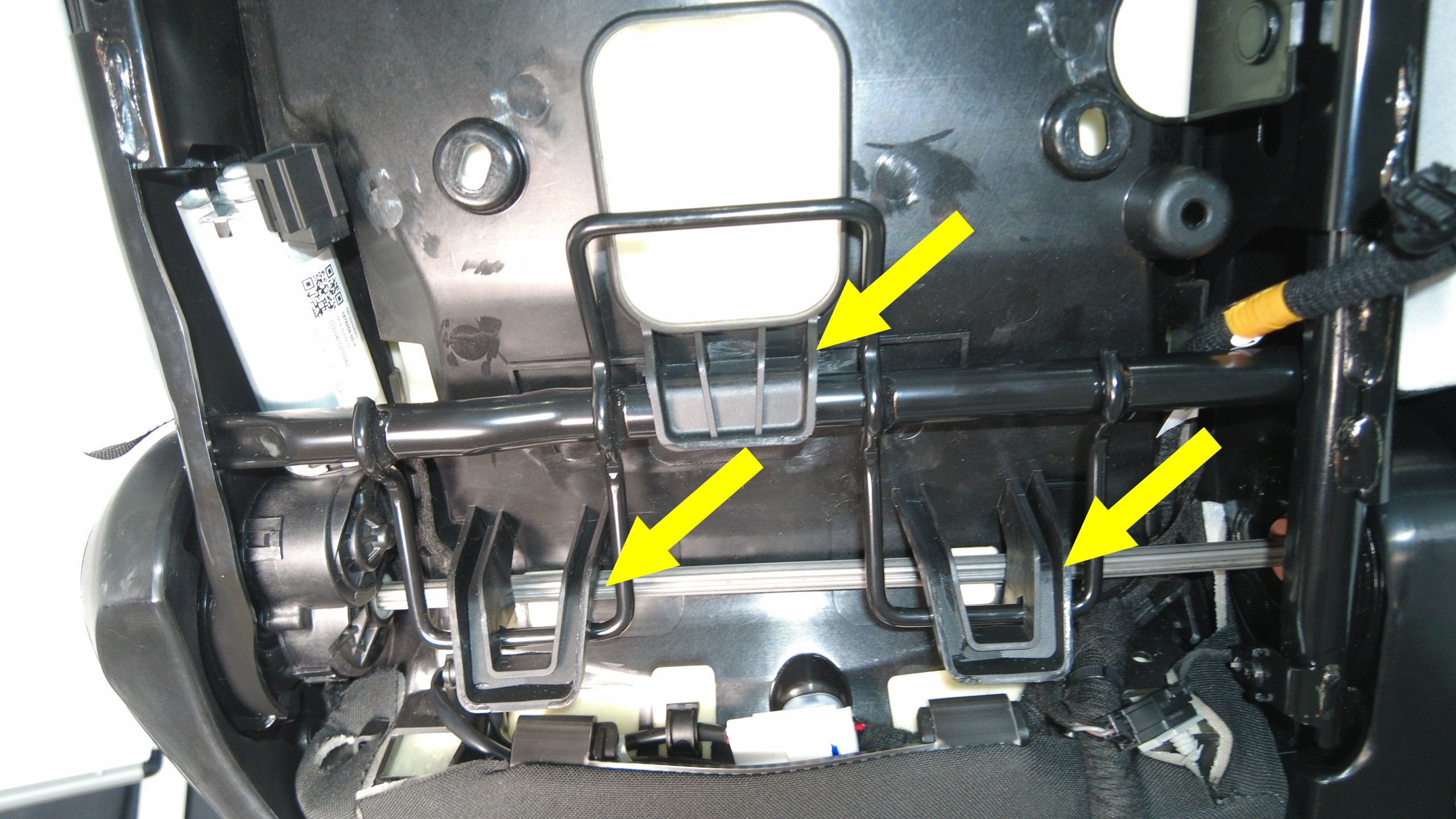 安装将第二排左侧座椅靠背基板固定到框架的卡子(3 个)。