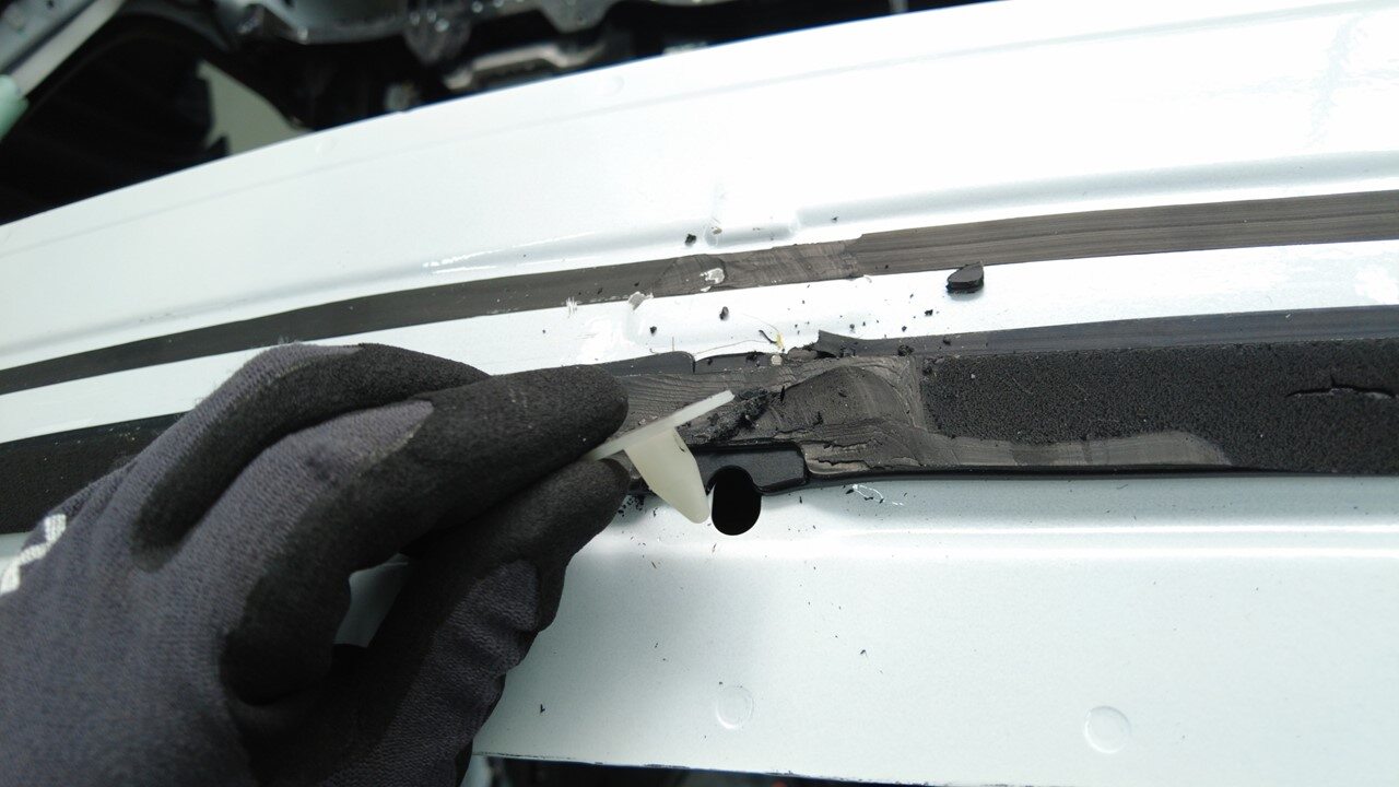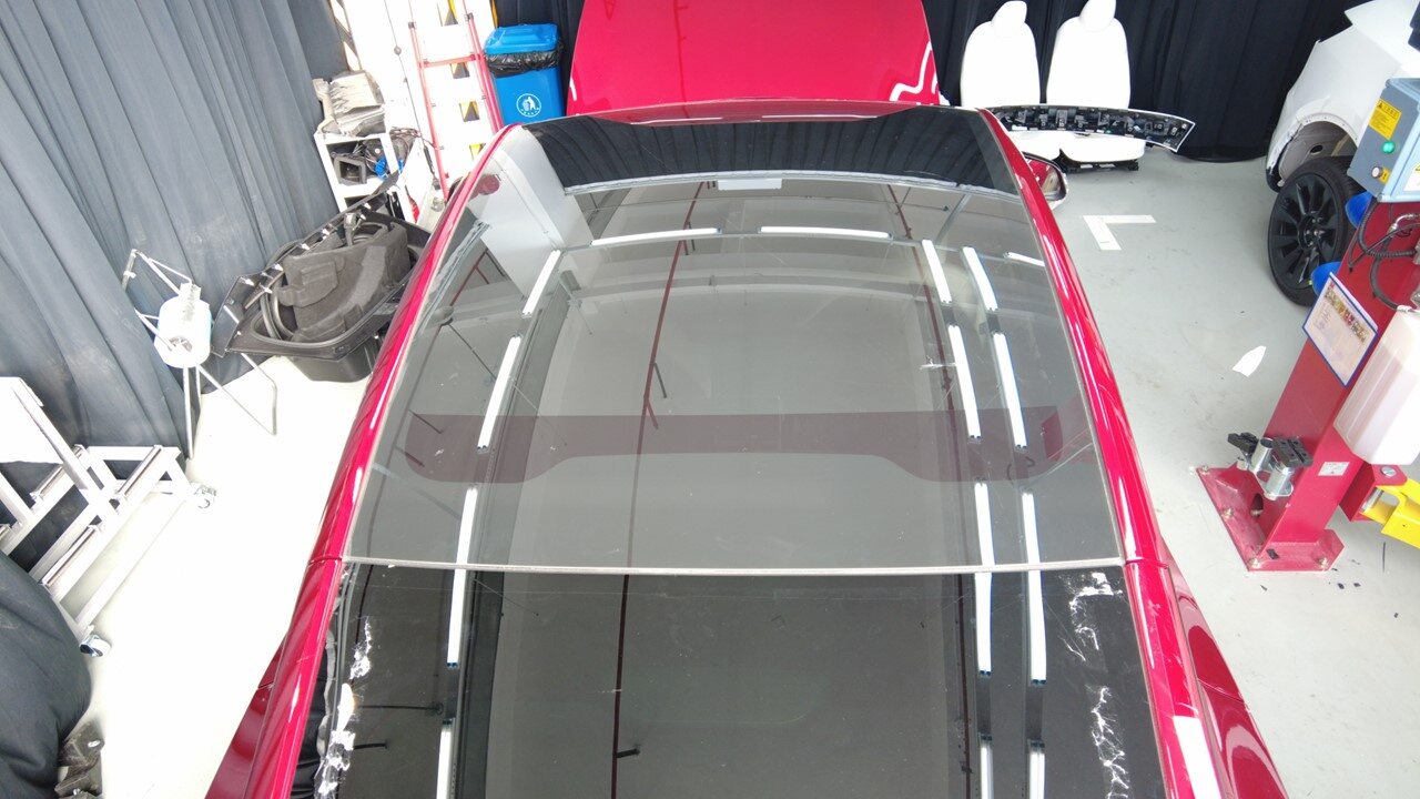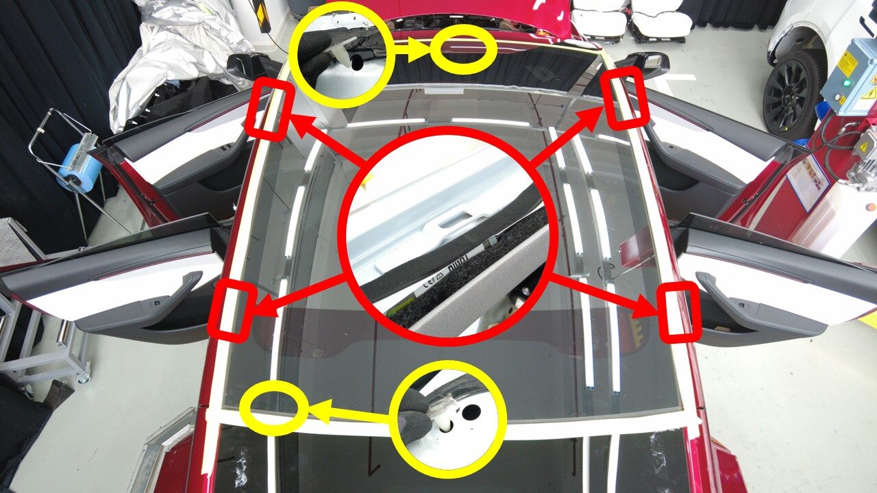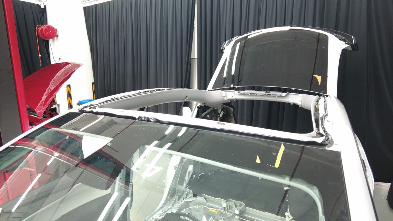 Remove tape from body surrounding roof glass