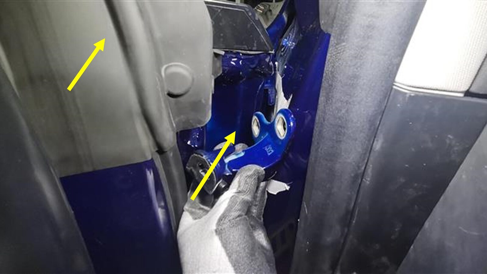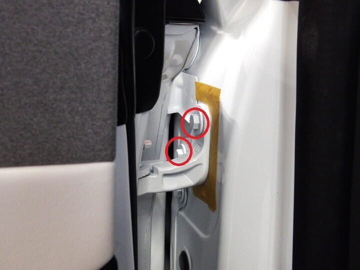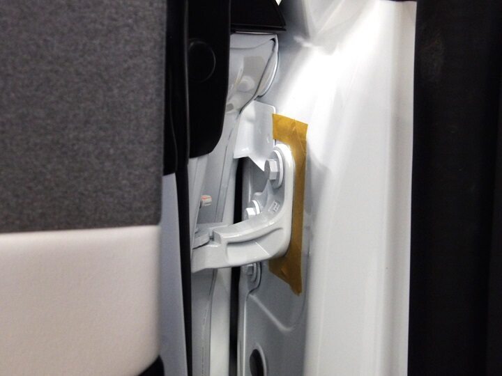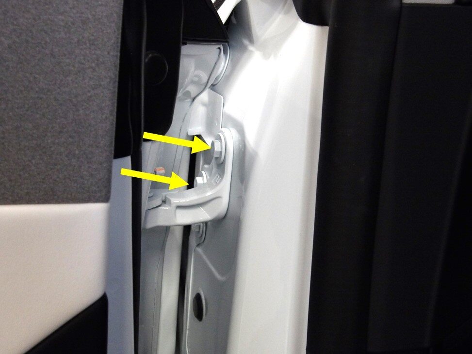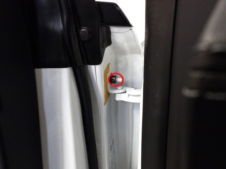 使用异丙醇 (IPA) 湿巾清洁左前车门上部铰链螺栓,然后等待风干 1 分钟。