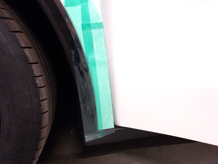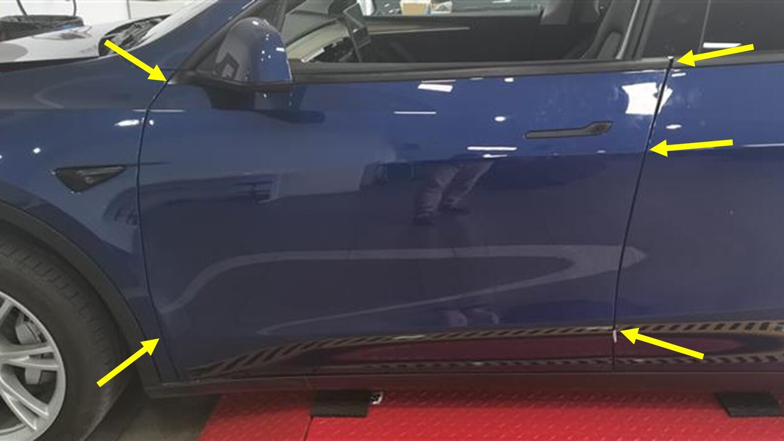 沿左前车门侧和车身侧上部铰链粘贴胶带,以标记铰链安装位置。