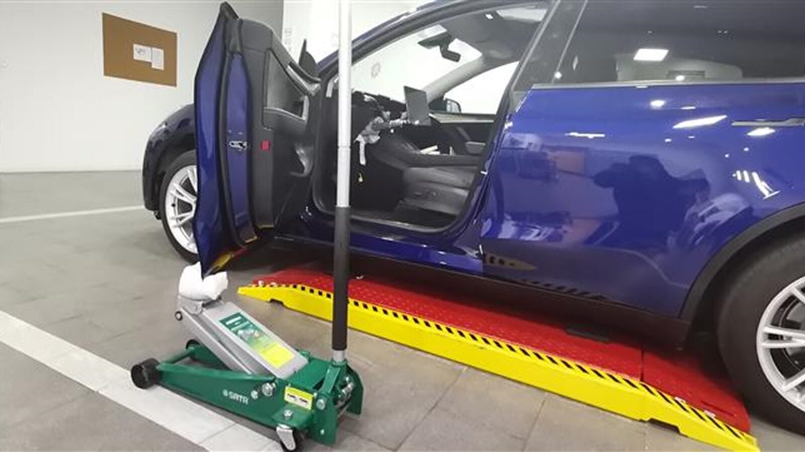 注一只手向外推动车门顶部(靠近扬声器的区域),然后向上转动铰链,将其朝车尾方向移出。