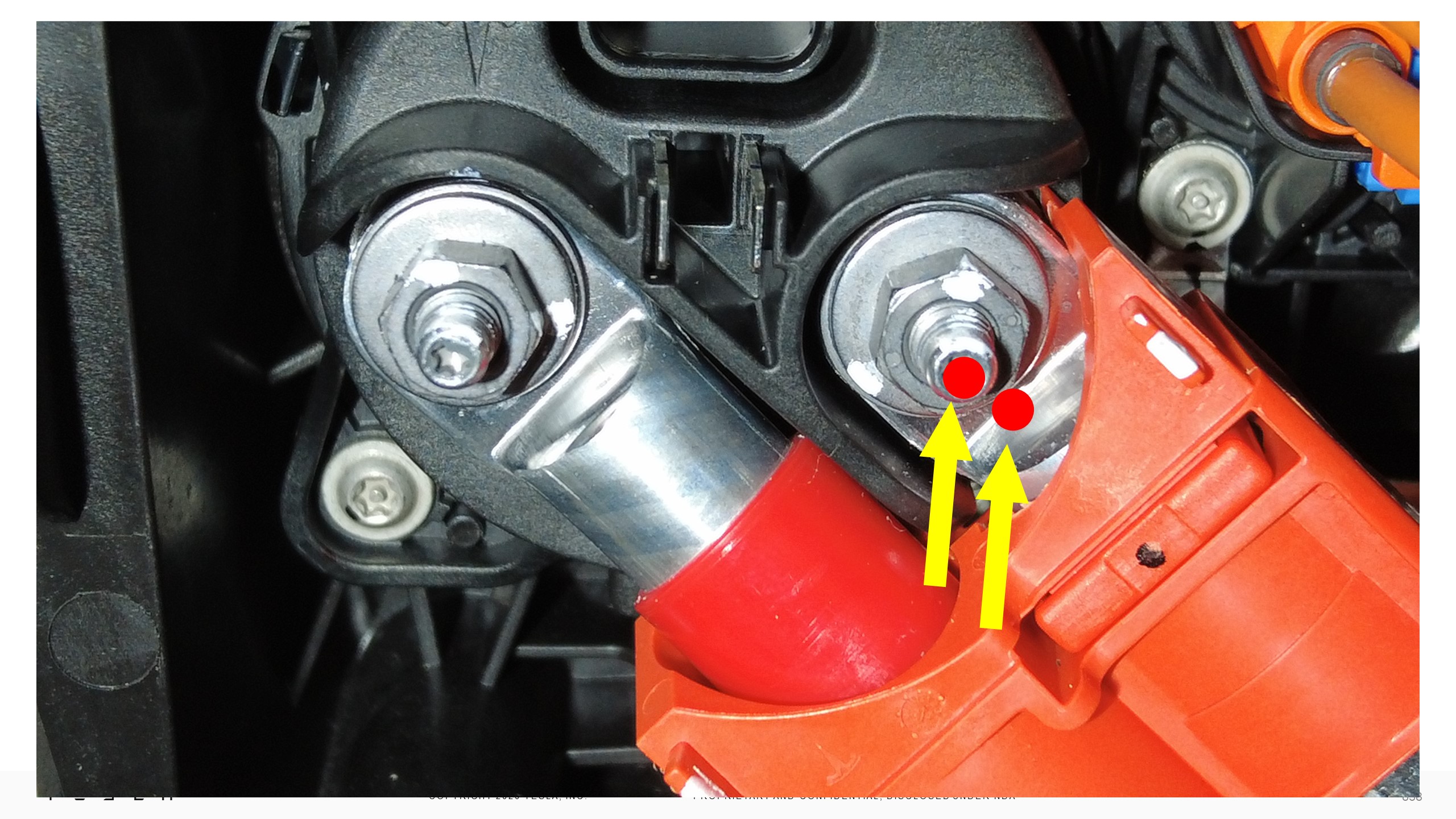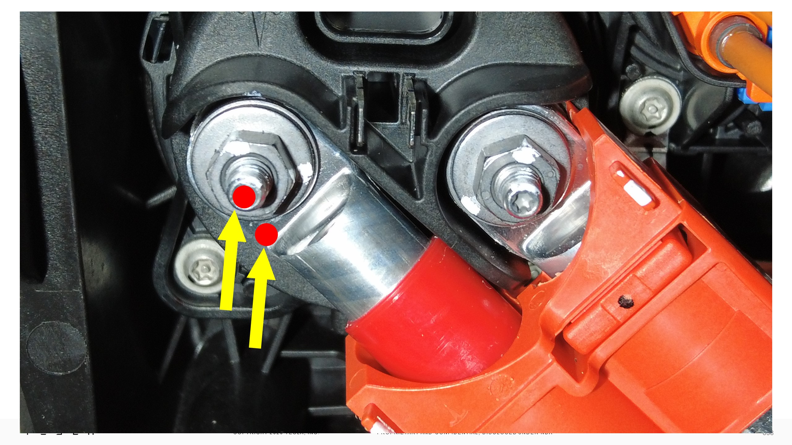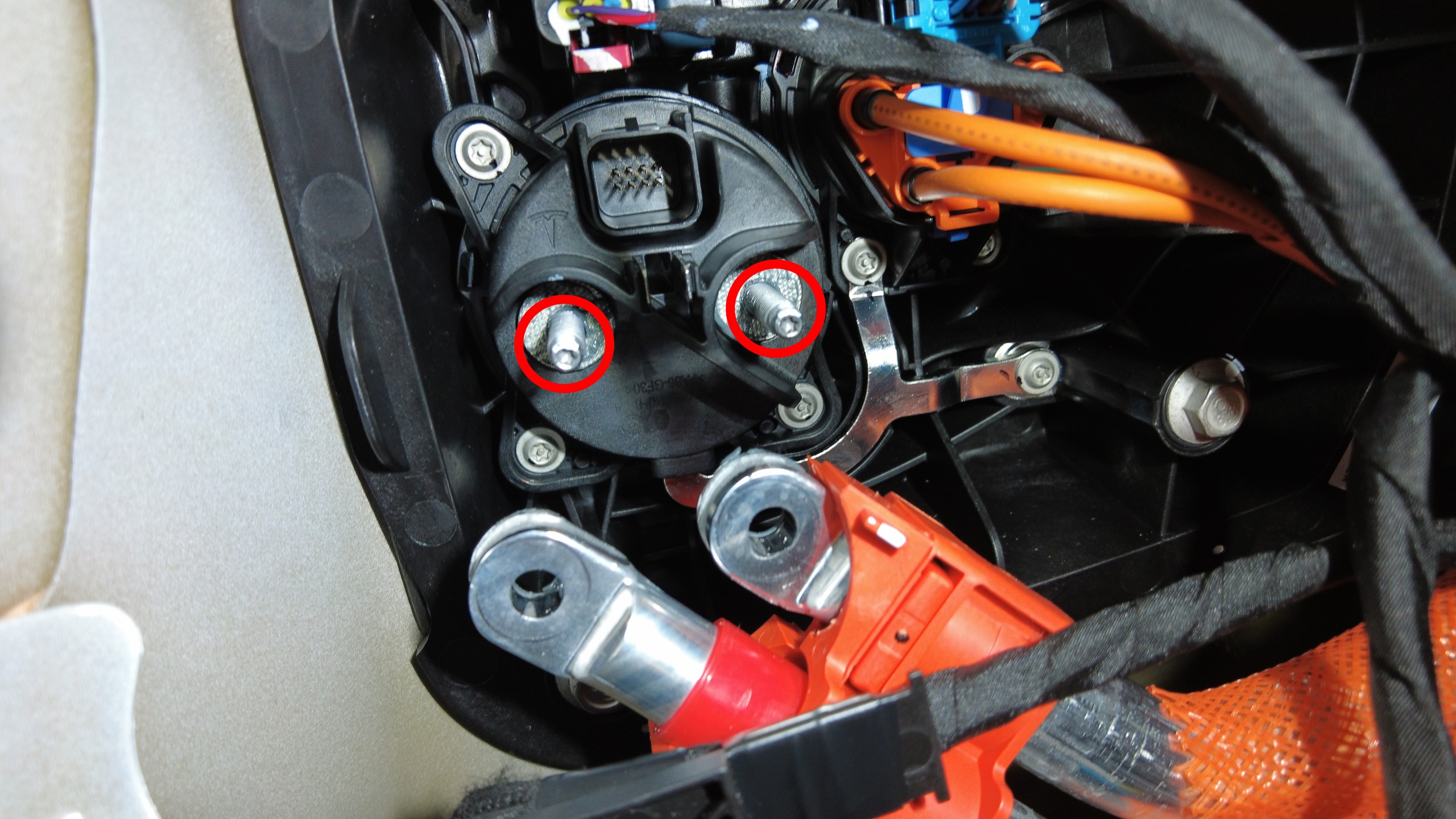 | 将充电接口母排引线固定到充电接口总成的螺母(2 个) |