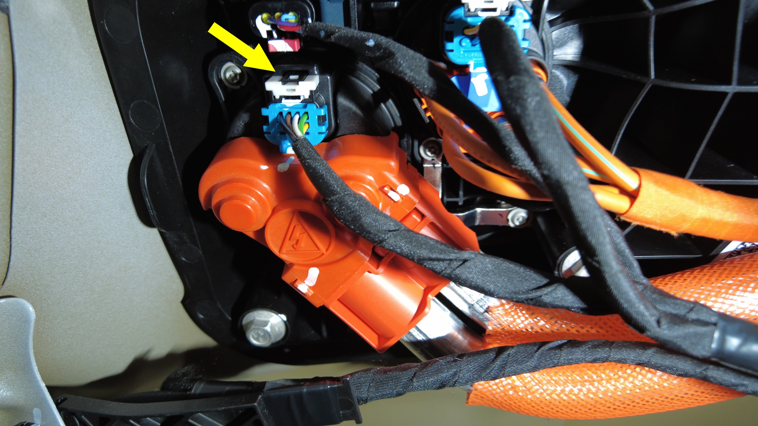 紧固白色锁片,然后将直流逻辑连接器连接到充电接口总成。