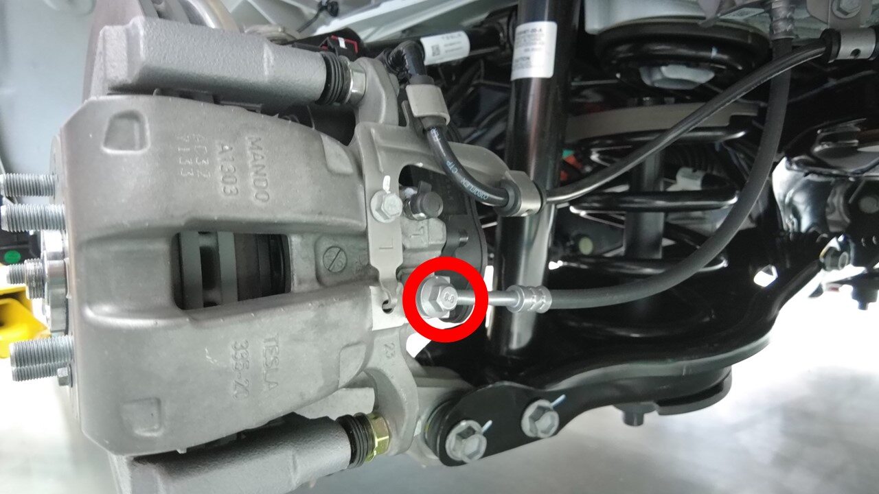 | 将左后制动软管固定到左后制动钳的螺栓 |