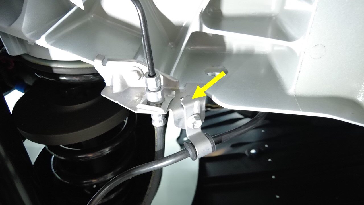 安装完成后,请确保挠性制动软管未扭结且能够向前弯曲。降低车辆时,注意勿使挠性制动软管触碰轮拱内衬。
