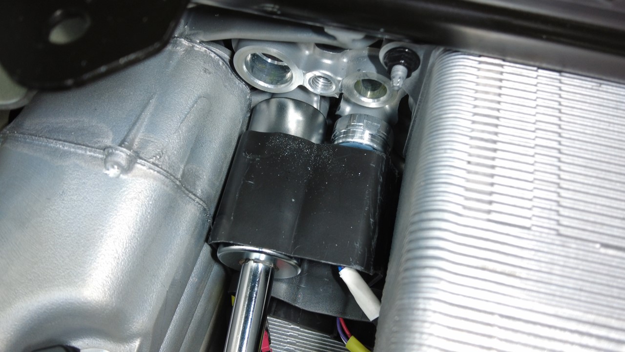 小心按下 Schrader 阀门(2 个),以平衡空调系统压力和实际环境大气压。