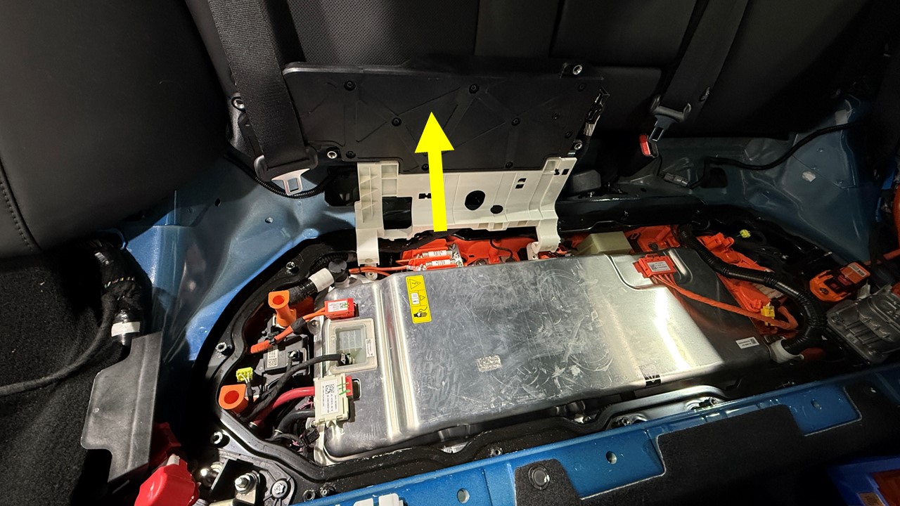 拆下将正极电池组触点开关固定到高压电池仓的螺母。