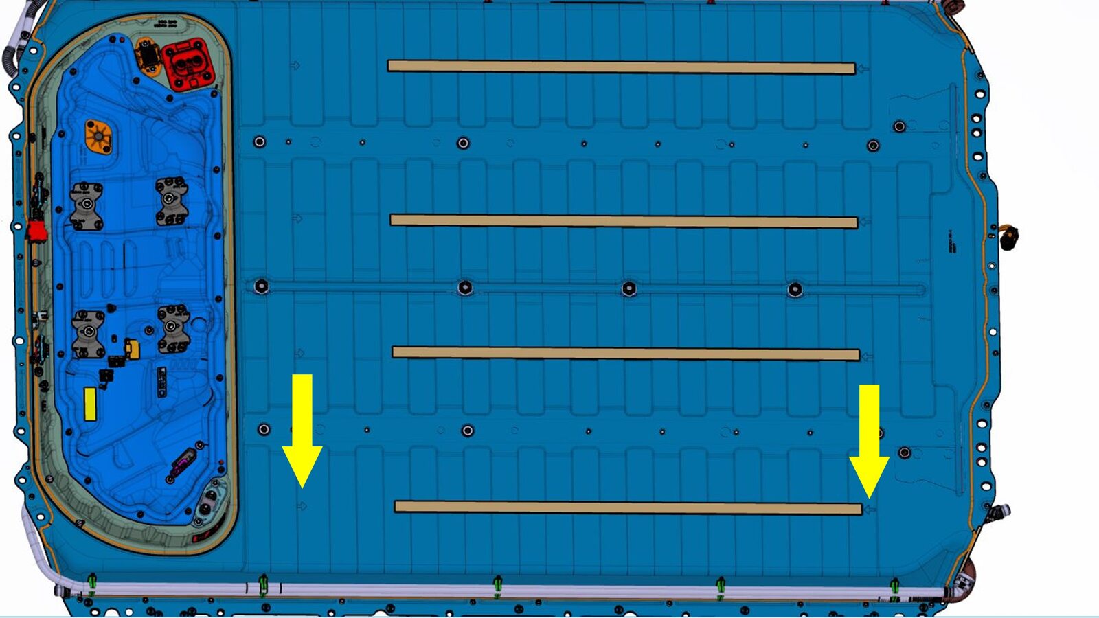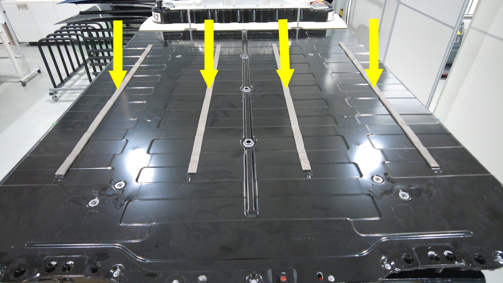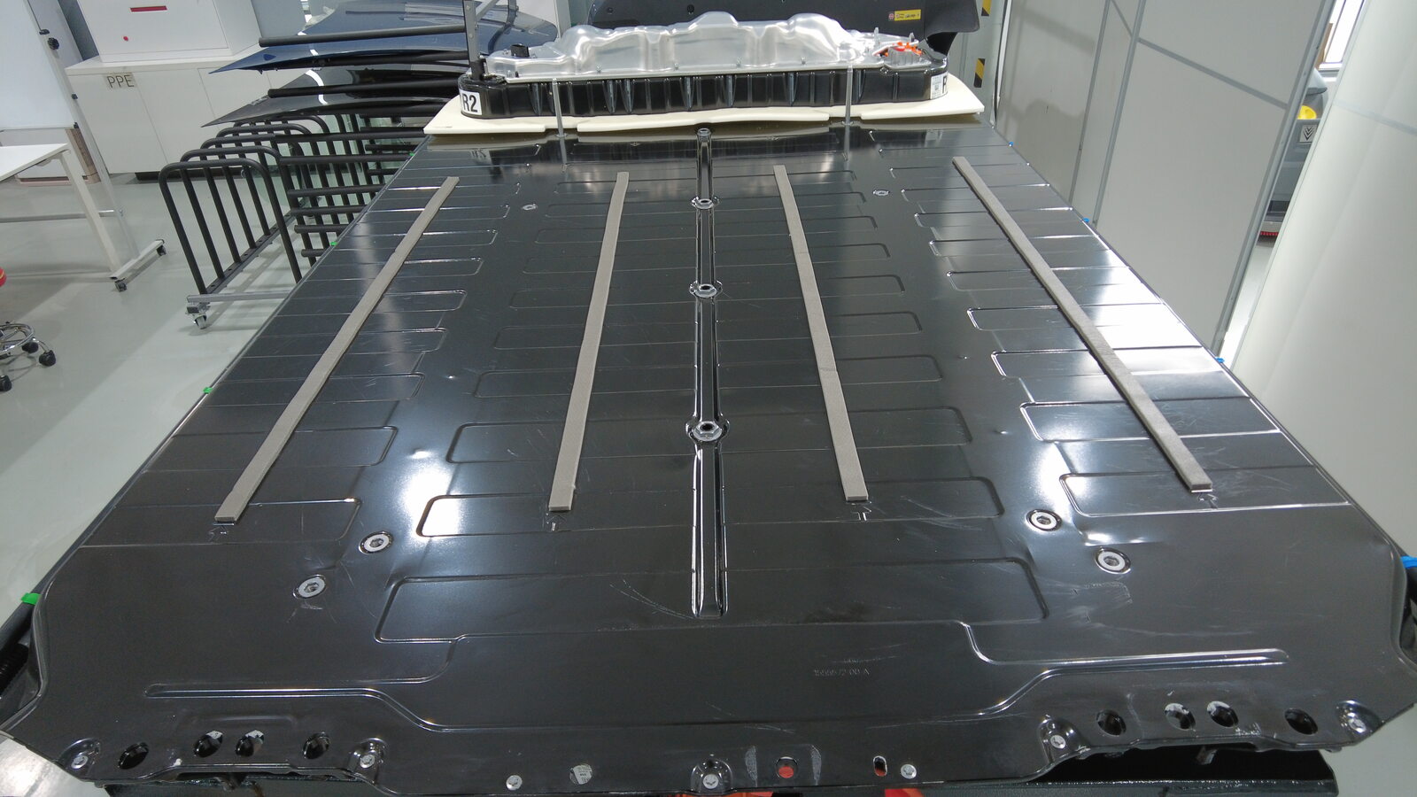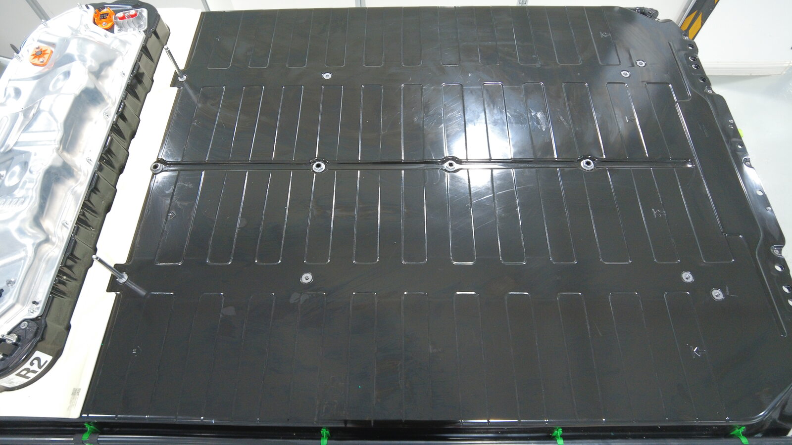 Clean top surface of high voltage battery pack.