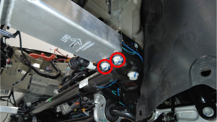 安装将左前副车架防撞罐固定到车辆的螺栓(2 个)。
