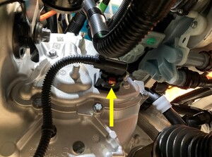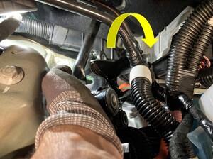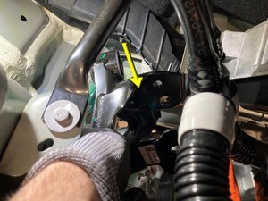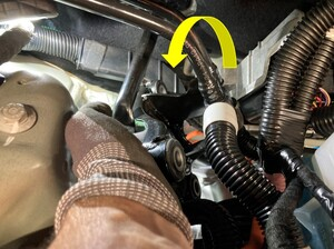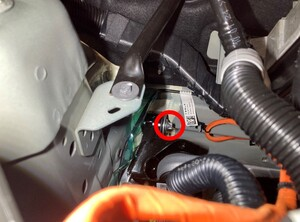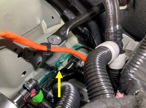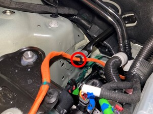 松开将高压线束固定到减震塔的夹子。