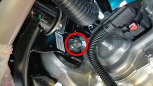 拆下并弃用将右侧电机支座隔离器固定到车辆的螺栓(2 个)。