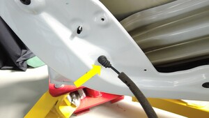 将左前车门电气线束从左前车门闩锁连接器上断开。