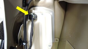 将闩锁线缆索环压入车门,将线缆穿过开口,同时将闩锁从车门上拆下。