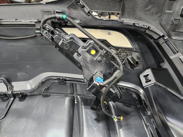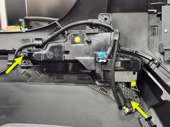 松开固定销(2 个),将左后饰板灯移至一旁。