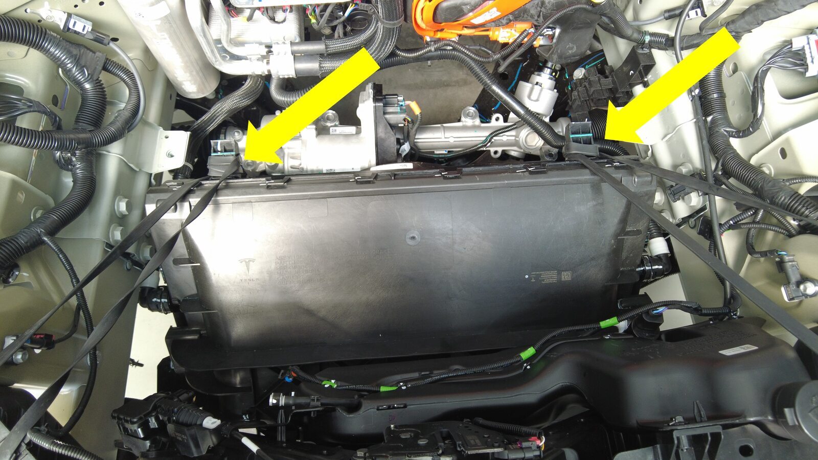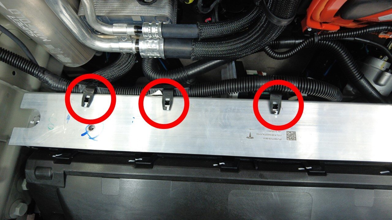 安装将转向机线束固定到前备箱储物单元加固支架的夹子(3 个)。