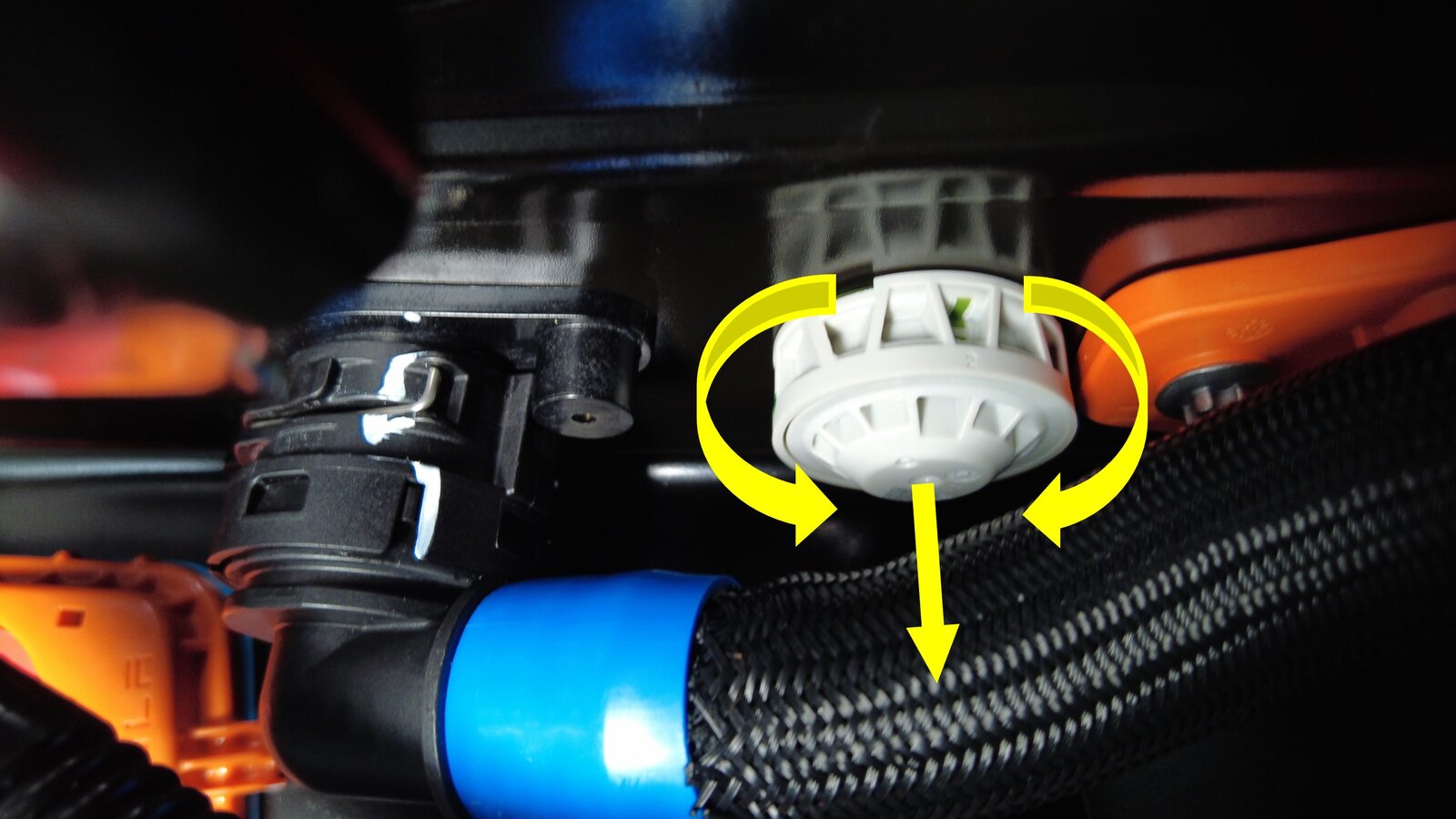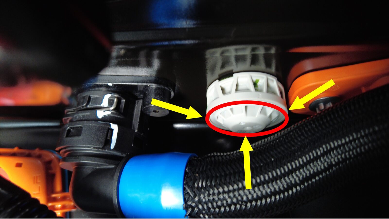 将左侧溢流阀 2.0 从高压电池高压电池仓左侧底部拆下。