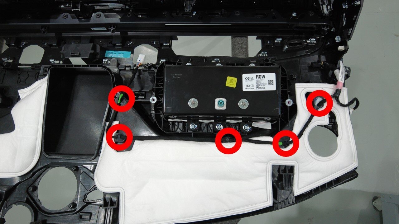 - 拆下触摸屏和机颈。请参阅 中央显示器 - 支座(拆卸和更换)。