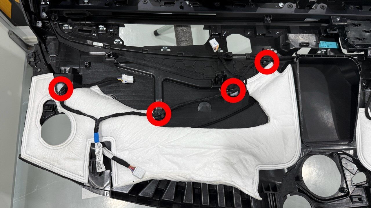 拆下并弃用将仪表板支架固定到副驾位气囊附近横梁的螺栓(2 个)。